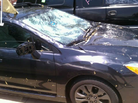 This 2012 Subaru Impreza was smashed by hail in Grand Prairie, TX on Wednesday June 13, 2012. Wow!