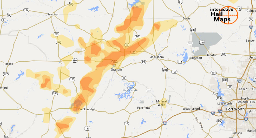 Some large hail was reported near Graham, TX and near Bowie, TX on Monday night, June 11th, 2012. View the hail map to see where the hail fell. The blue hail swath is where there was radar indicated large hail. Hen Egg size hail was reported […]