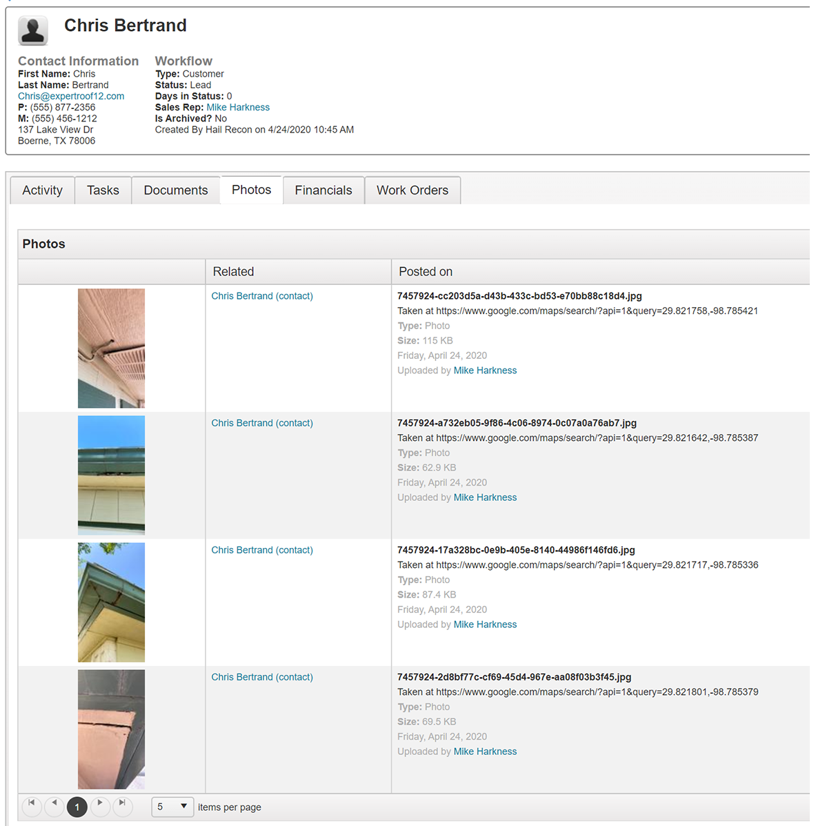 Recon Pics are synced up with JobNimbus. You can find them by clicking the photos tab.