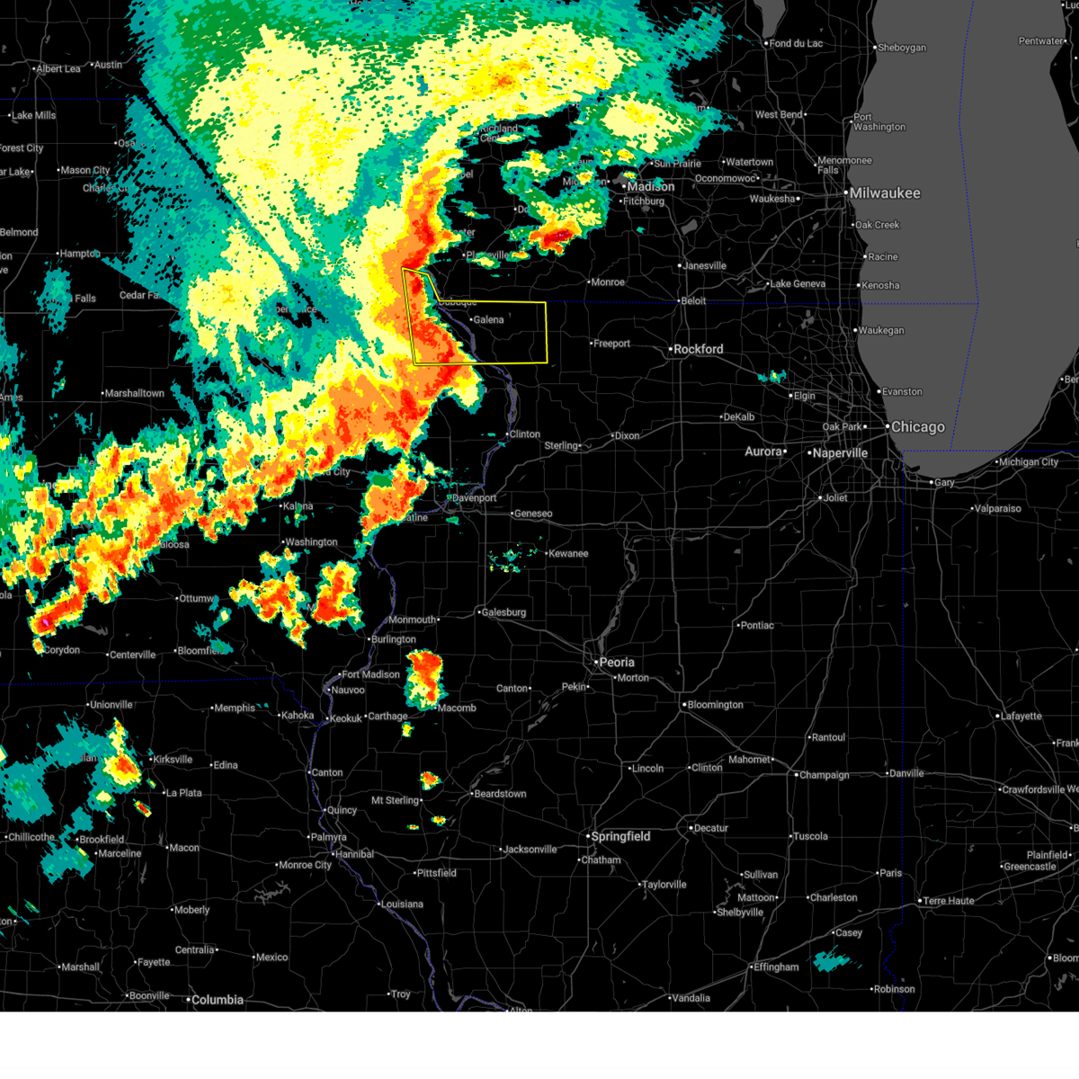 Svrdvn the national weather service in the quad cities has issued a * severe thunderstorm warning for, jo daviess county in northwestern illinois, northern carroll county in northwestern illinois, stephenson county in northwestern illinois, northern jackson county in east central iowa, southeastern dubuque county in northeastern iowa, * until 745 pm cdt. * at 627 pm cdt, a severe thunderstorm was located over aiken, or over galena, moving east at 50 mph. this is a destructive storm for galena, mount carroll and freeport (radar indicated). Hazards include 90 mph wind gusts. You are in a life-threatening situation. flying debris may be deadly to those caught without shelter. mobile homes will be heavily damaged or destroyed. homes and businesses will have substantial roof and window damage. Expect extensive tree damage and power outages.
