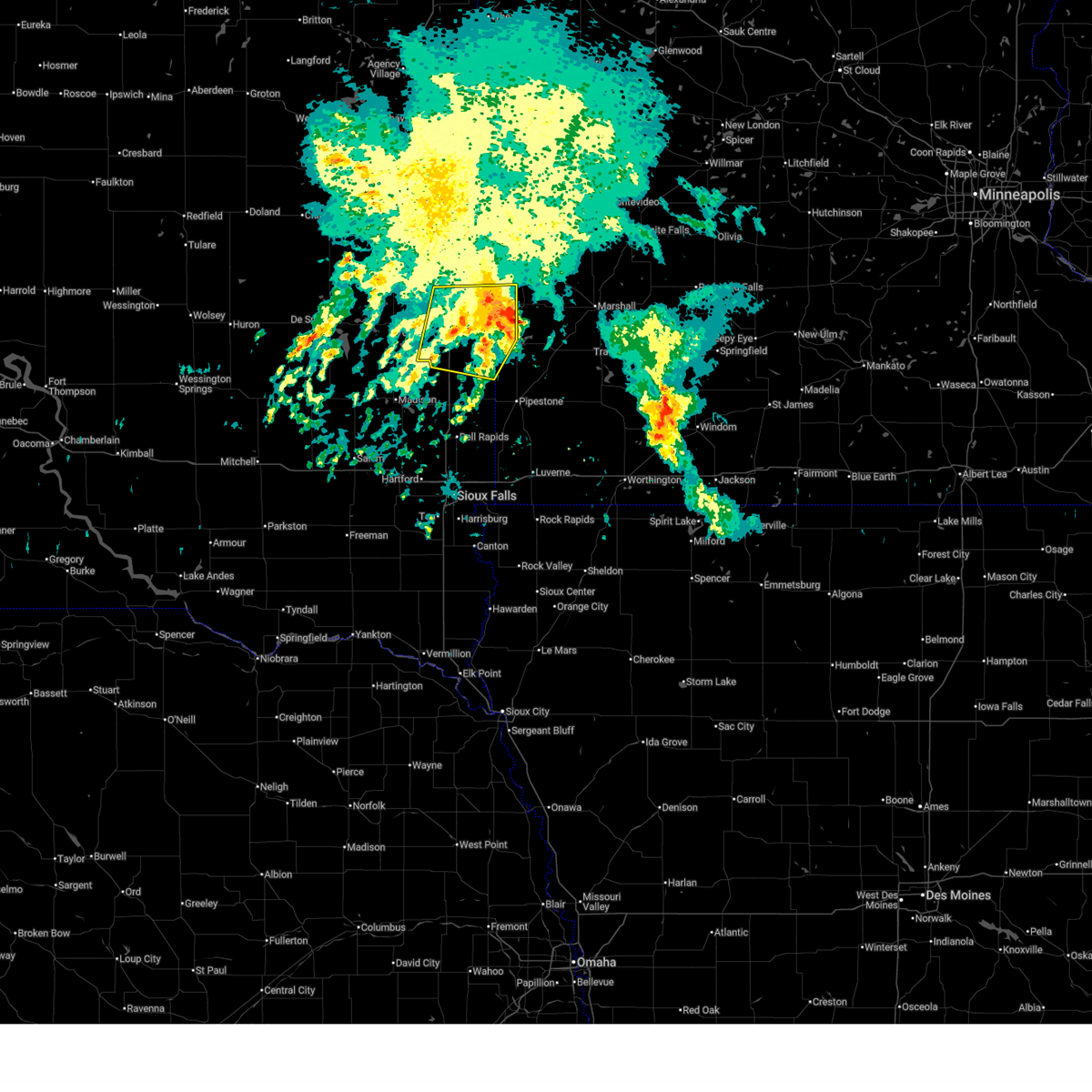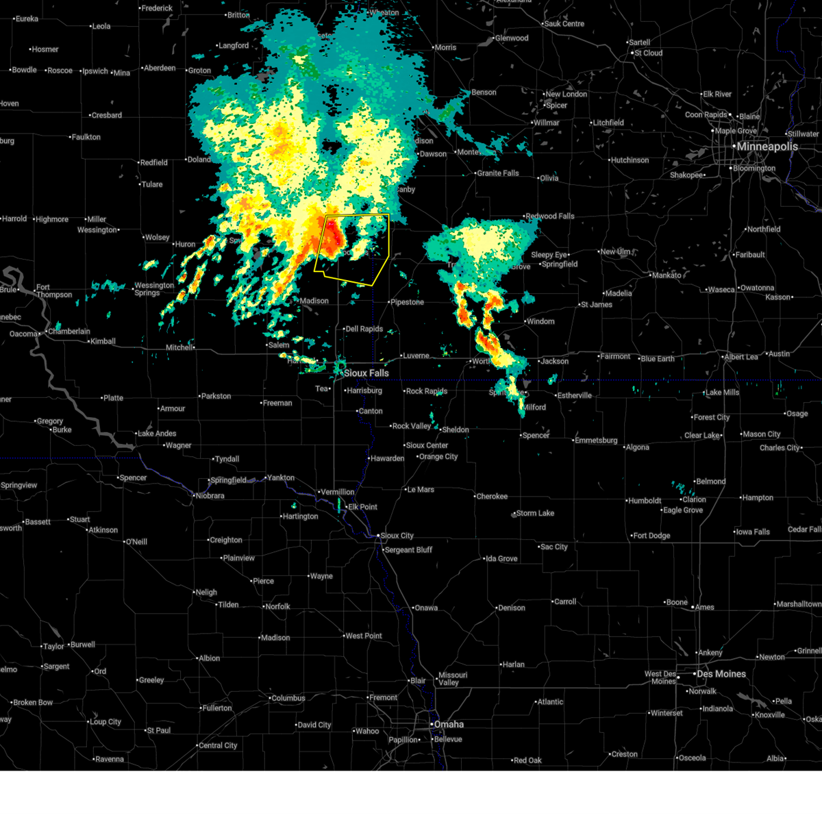 At 740 am cdt, severe thunderstorms were located along a line extending from 7 miles southeast of estelline to near wentworth to near bridgewater, moving east at 65 mph (radar indicated). Hazards include 70 mph wind gusts and penny size hail. Expect considerable tree damage. damage is likely to mobile homes, roofs, and outbuildings. severe thunderstorms will be near, white around 745 am cdt. lake vermillion state recreation area and colman around 750 am cdt. flandreau, hendricks, humboldt, egan and trent around 755 am cdt. wall lake around 800 am cdt. hartford, ivanhoe and arco around 805 am cdt. sioux falls, pipestone and pipestone national monument around 810 am cdt. minneota, holland and trosky around 815 am cdt. brandon, edgerton, ghent, woodstock, rowena and camden state park around 820 am cdt. Other locations impacted by these severe thunderstorms include ihlen, hatfield, bushnell and lynd.
