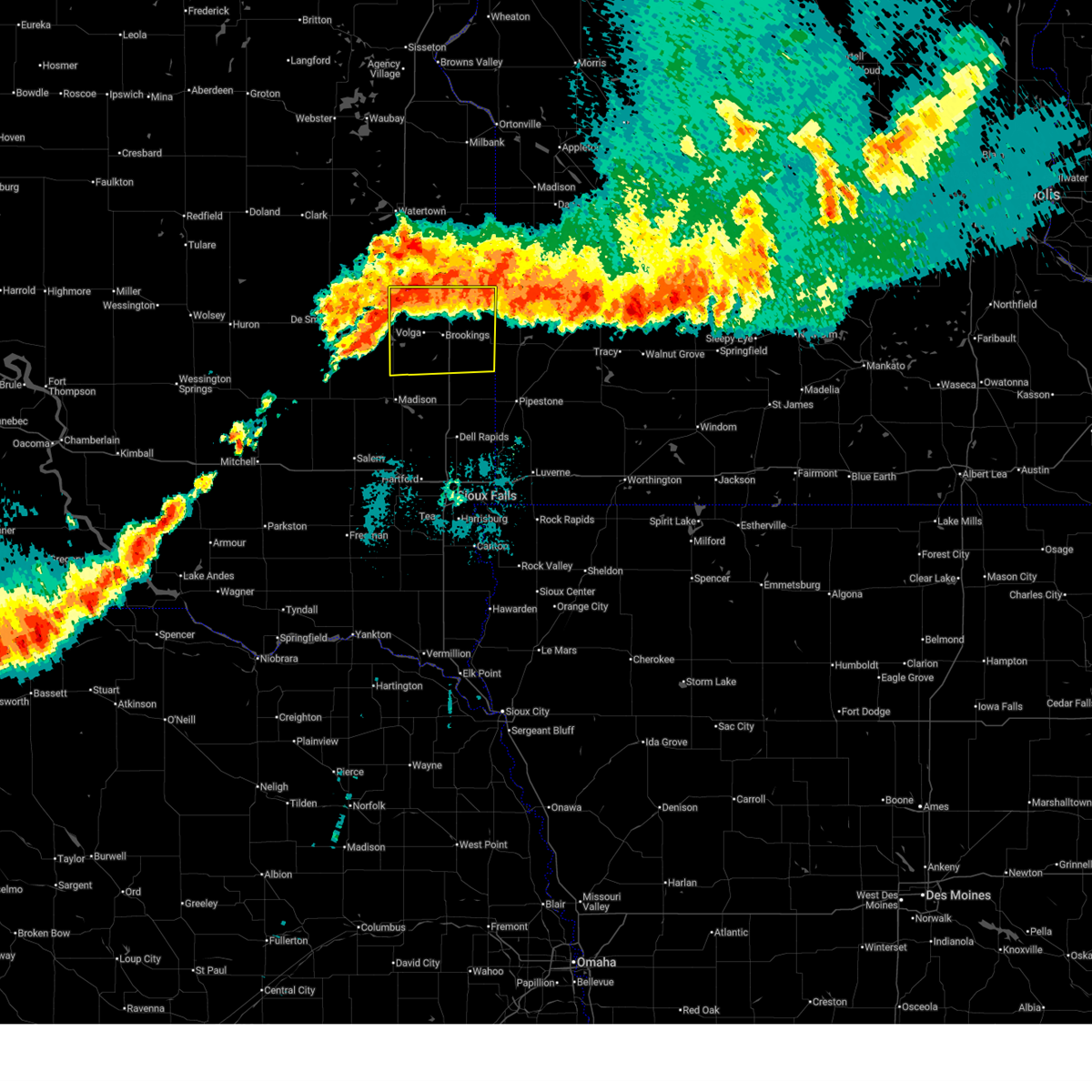At 650 pm cdt, a severe thunderstorm was located near volga, or near brookings, moving east at 25 mph (radar indicated). Hazards include 70 mph wind gusts and nickel size hail. Expect considerable tree damage. damage is likely to mobile homes, roofs and outbuildings. this severe thunderstorm will be near, brookings around 700 pm cdt. aurora around 710 pm cdt. elkton around 730 pm cdt. Other locations impacted by this severe thunderstorm include bushnell.
