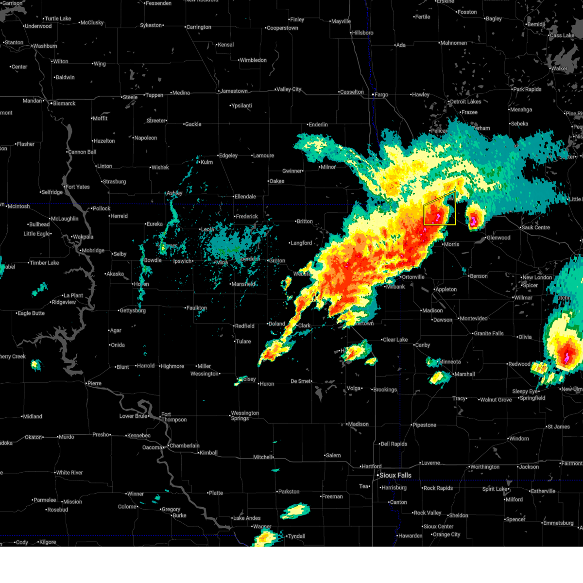 At 139 am cdt, severe thunderstorms were located along a line extending from brushvale to near victor, moving east at 50 mph (radar indicated). Hazards include 60 mph wind gusts and penny size hail. Expect damage to roofs. siding. and trees. severe thunderstorms will be near, wahpeton around 145 am cdt. breckenridge and lamars around 150 am cdt. everdell and blackmer around 155 am cdt. foxhome around 200 am cdt. western around 210 am cdt. also includes the following highways, interstate 29 between mile markers 0 and 19. Interstate 94 in minnesota between mile markers 65 and 80.