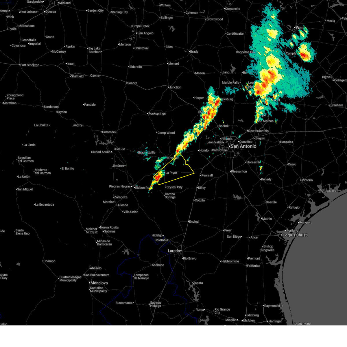At 1009 pm cdt, a severe thunderstorm was located 2 miles north of la pryor, moving east at 25 mph. this storm is crossing highway 83. this is a very dangerous storm (radar indicated). Hazards include baseball size hail and 60 mph wind gusts. People and animals outdoors will be severely injured. expect shattered windows, extensive damage to roofs, siding, and vehicles. Locations impacted include, batesville, la pryor, uvalde estates and washer.