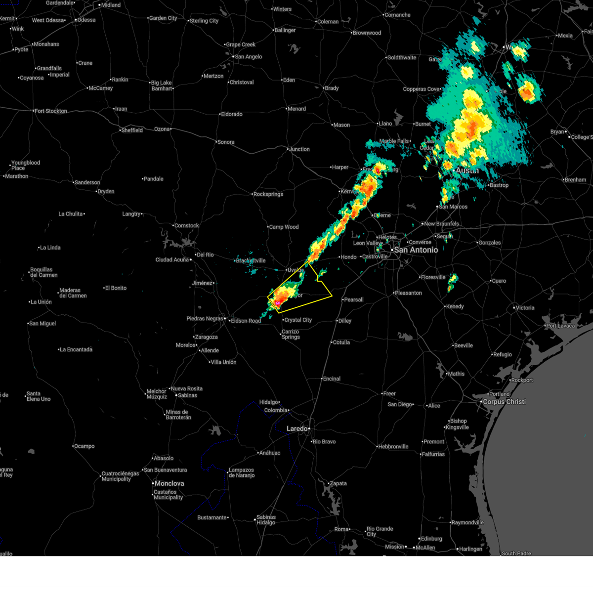 Svrewx the national weather service in austin san antonio has issued a * severe thunderstorm warning for, east central maverick county in south central texas, northern dimmit county in south central texas, southeastern zavala county in south central texas, southwestern frio county in south central texas, * until 230 am cdt. * at 128 am cdt, a severe thunderstorm was located 10 miles east of el indio, moving northeast at 55 mph (radar indicated). Hazards include 60 mph wind gusts and quarter size hail. Hail damage to vehicles is expected. Expect wind damage to roofs, siding, and trees.