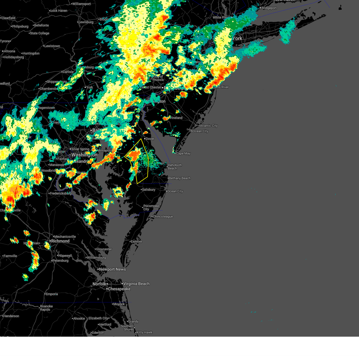 The storms which prompted the warning have weakened below severe limits, and are exiting the warned area. therefore, the warning will be allowed to expire. however gusty winds and heavy rain are still possible with these thunderstorms. a severe thunderstorm watch remains in effect until 1000 pm edt for central and southern delaware, and eastern maryland. to report severe weather, contact your nearest law enforcement agency. they will relay your report to the national weather service mount holly nj.