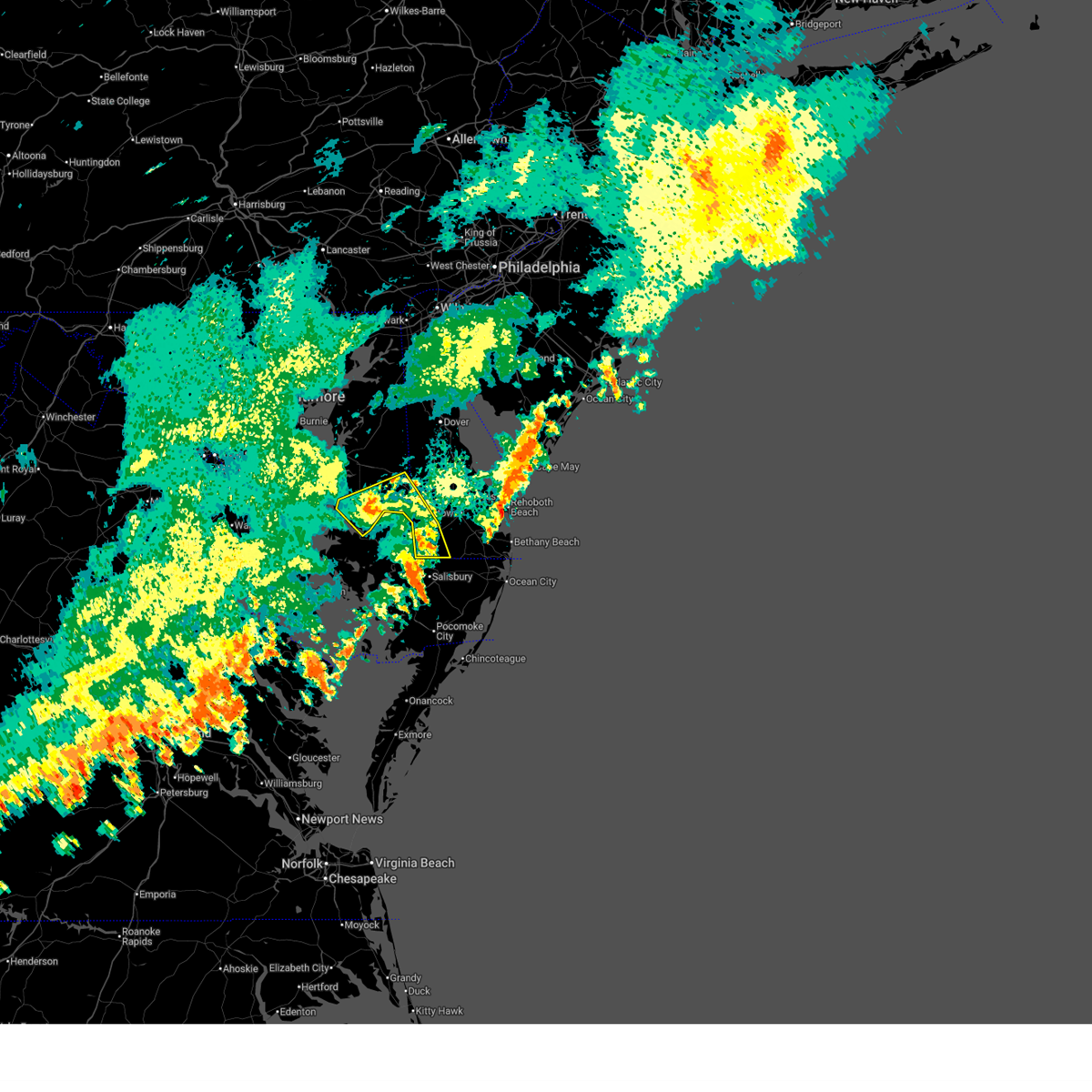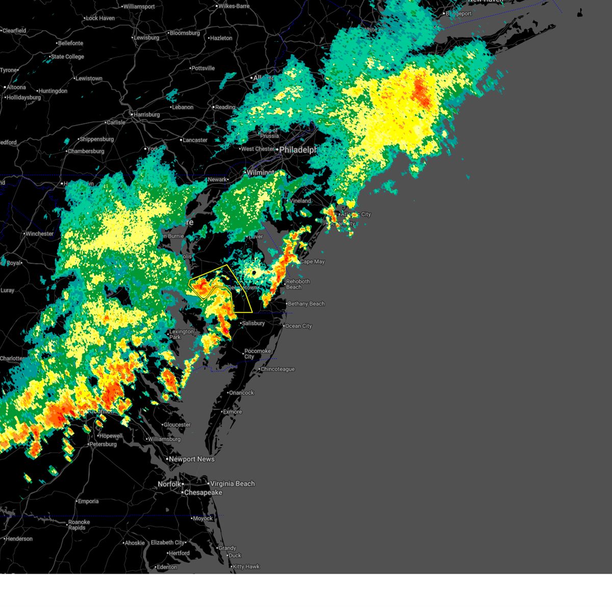 Svrphi the national weather service in mount holly nj has issued a * severe thunderstorm warning for, southwestern sussex county in southern delaware, central talbot county in eastern maryland, southern caroline county in eastern maryland, * until 915 pm edt. * at 815 pm edt, severe thunderstorms were located along a line extending from 6 miles south of tilghman island to near taylors island to 11 miles northwest of deal island, moving east at 40 mph (radar indicated). Hazards include 60 mph wind gusts. damage to roofs, siding, trees, and power lines is possible