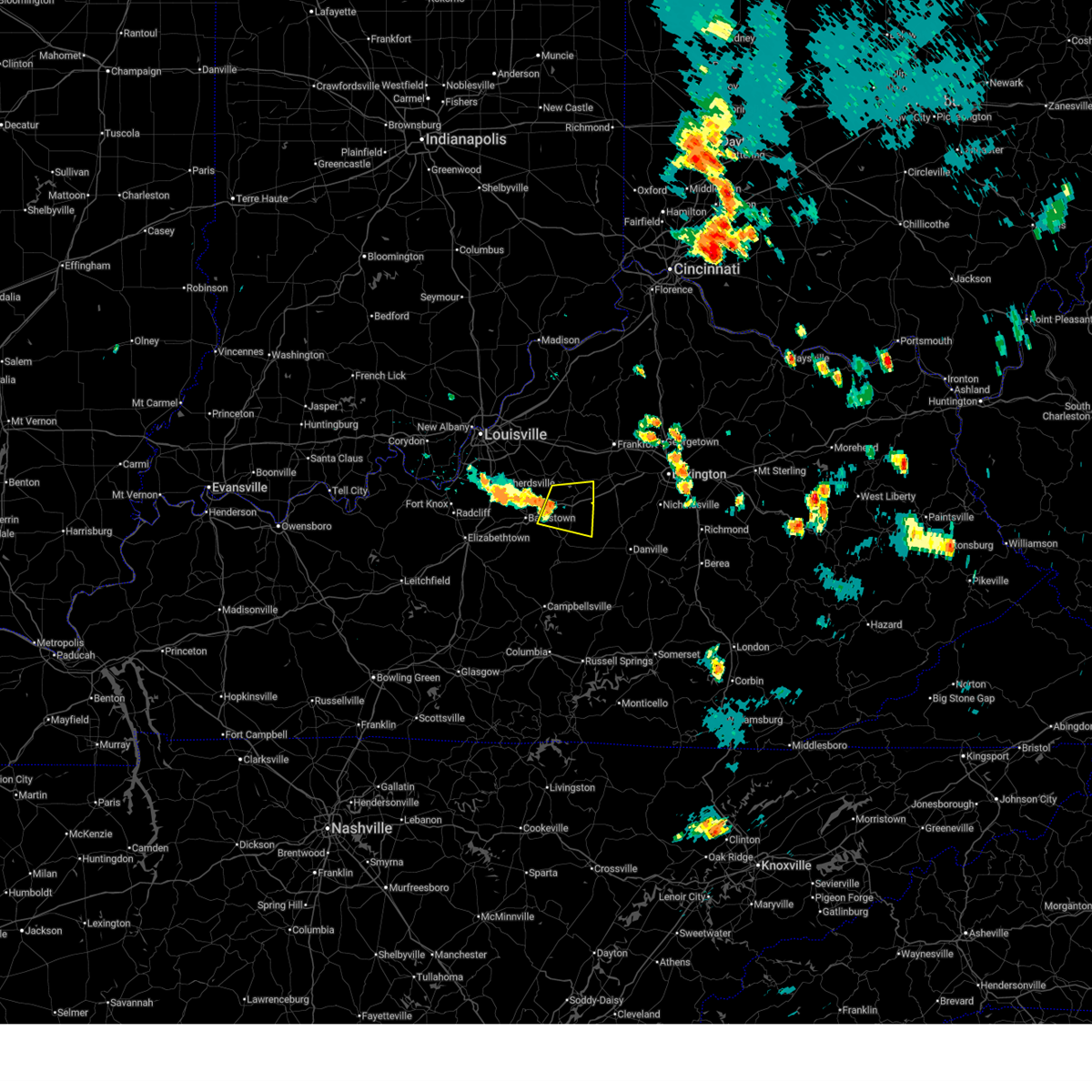 The storm which prompted the warning has weakened. however, gusty winds and heavy rain are still possible with this thunderstorm east of bardstown.