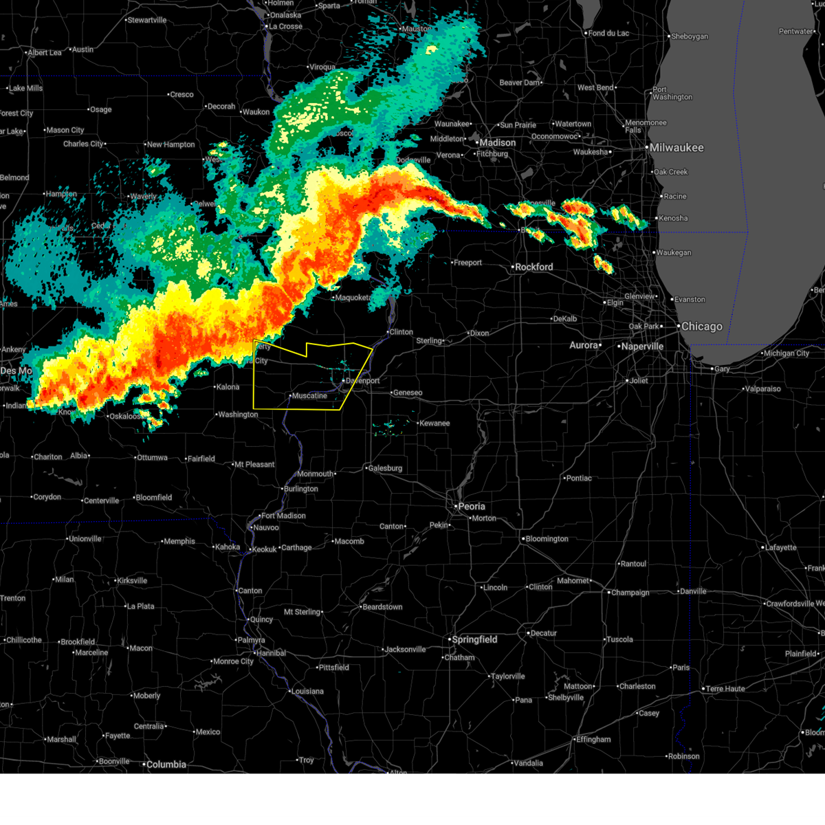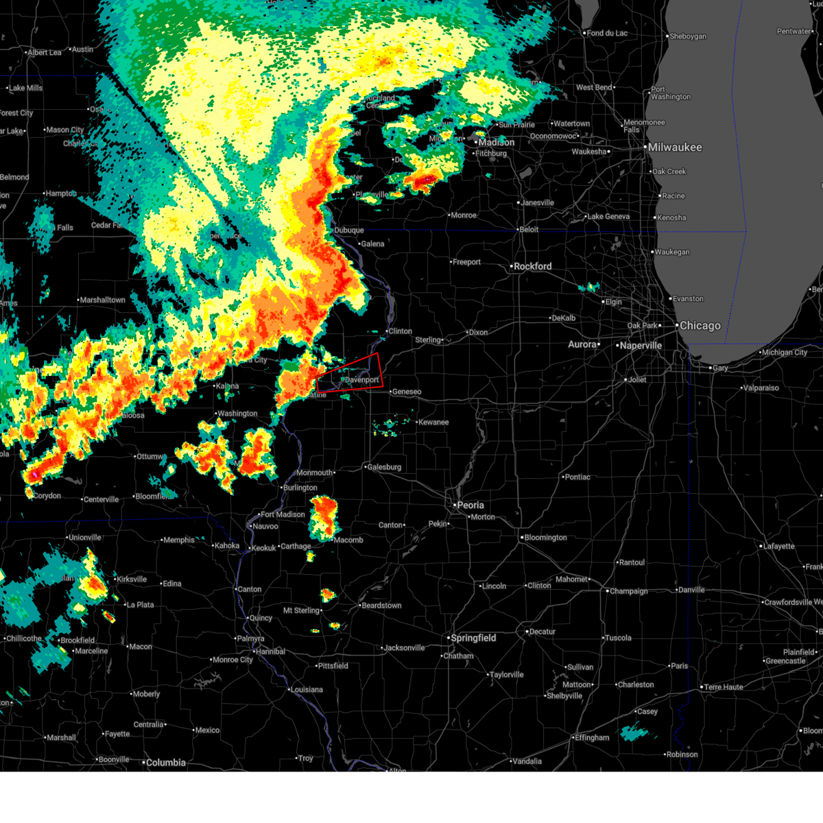 At 321 am cdt, a severe thunderstorm was located over illinois city, or 7 miles east of muscatine, moving southeast at 55 mph (radar indicated). Hazards include 60 mph wind gusts. Expect damage to roofs. siding. and trees. locations impacted include, davenport, moline, rock island, bettendorf, muscatine, east moline, aledo, silvis, milan, le claire, coal valley, burgess, hampton, port byron, walcott, blue grass, buffalo, andalusia, rapids city and viola. this includes the following highways, interstate 74 in iowa between mile markers 1 and 5. interstate 80 in iowa between mile markers 292 and 306. interstate 80 in illinois between mile markers 1 and 5. interstate 74 in illinois between mile markers 2 and 3. interstate 88 between mile markers 1 and 3. Interstate 280 between mile markers 1 and 18.