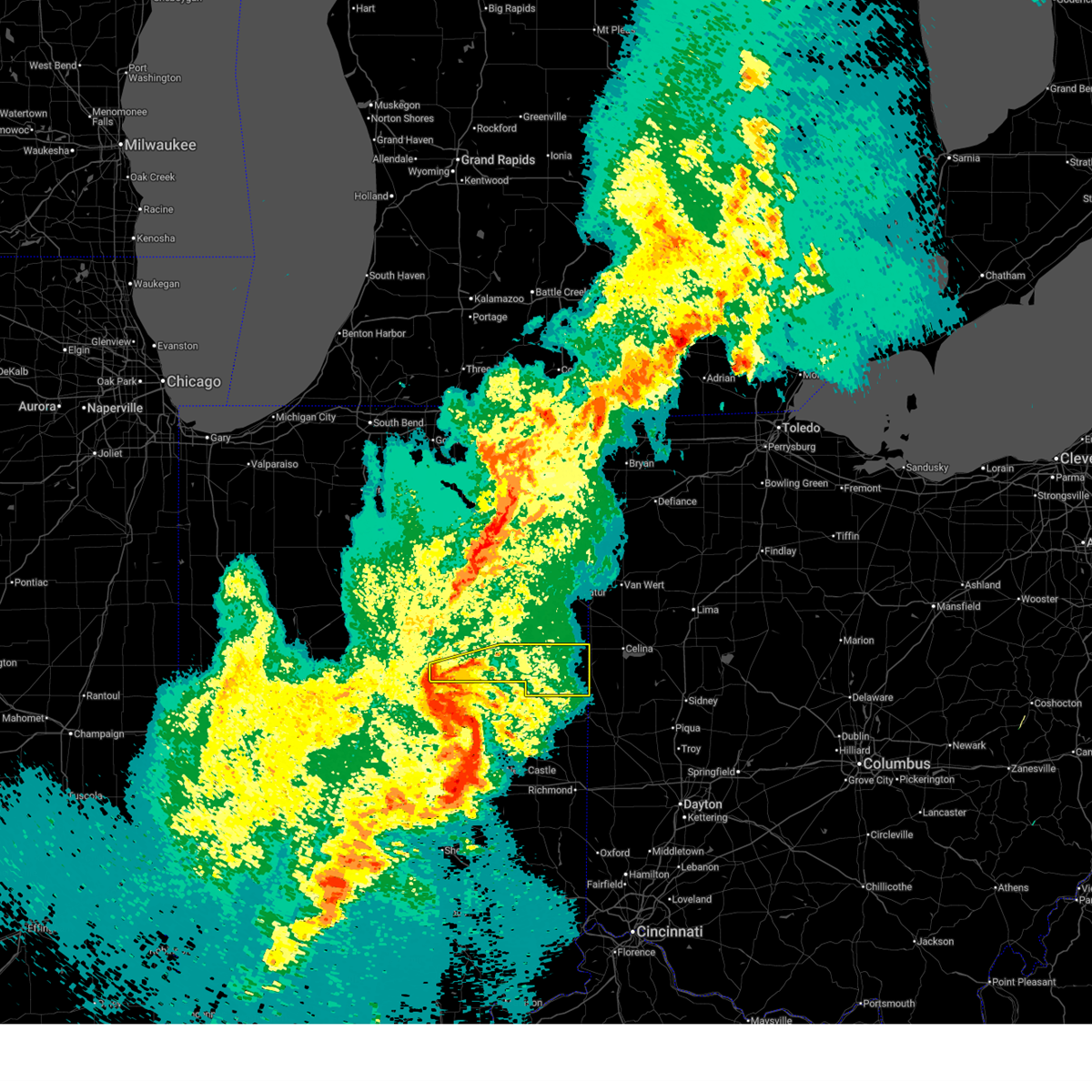 At 551 am edt, severe thunderstorms were located along a line extending from near payne to 7 miles west of ohio city to portland, moving east at 65 mph (radar indicated). Hazards include 70 mph wind gusts and penny size hail. Expect considerable tree damage. damage is likely to mobile homes, roofs, and outbuildings. Locations impacted include, decatur, berne, dunkirk, redkey, geneva, monroeville, monroe, pennville, center, preble, dixon, bryant, vera cruz, ceylon, peterson, monmouth, hoagland, linn grove, domestic and rivare.