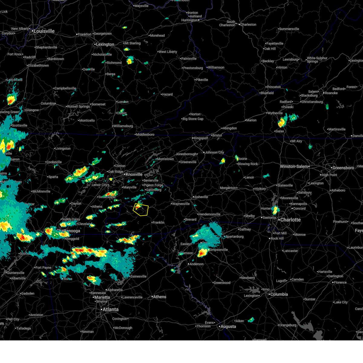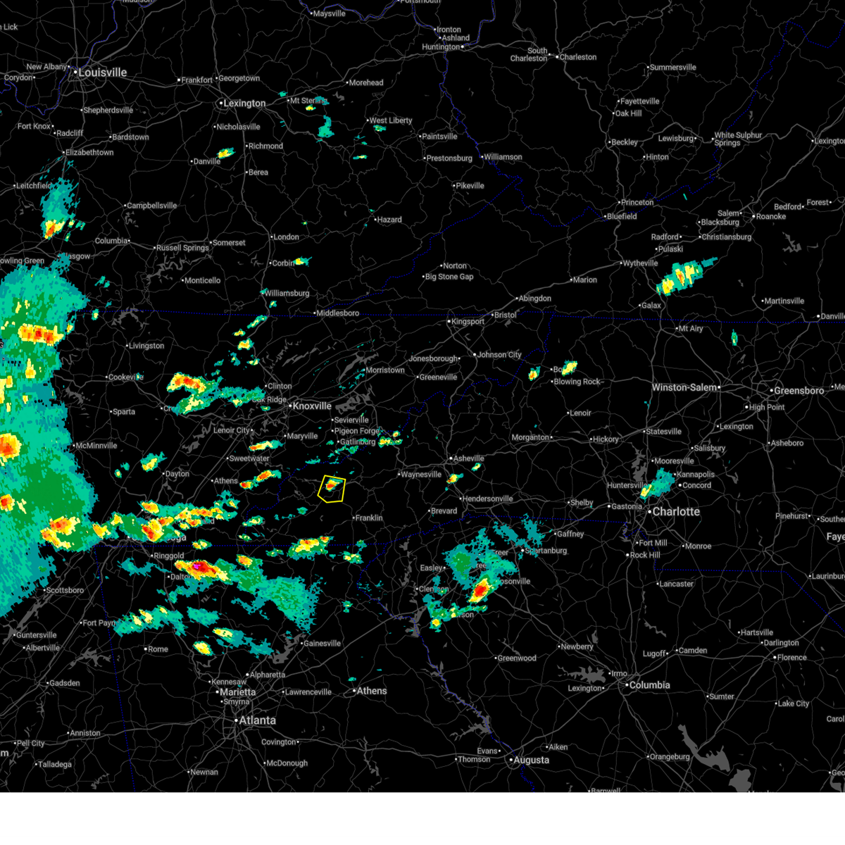 At 346 pm edt, severe thunderstorms were located along a line extending from 17 miles south of maryville to near robbinsville to 4 miles north of hayesville, moving east at 40 mph (radar indicated). Hazards include 60 mph wind gusts. Expect damage to trees and power lines. Locations impacted include, franklin, bryson city, robbinsville, town of santeetlah, smoky mountains-newfound gap, smoky mountains-fontana area, lake santeetlah, fontana lake, nantahala lake and fontana village.
