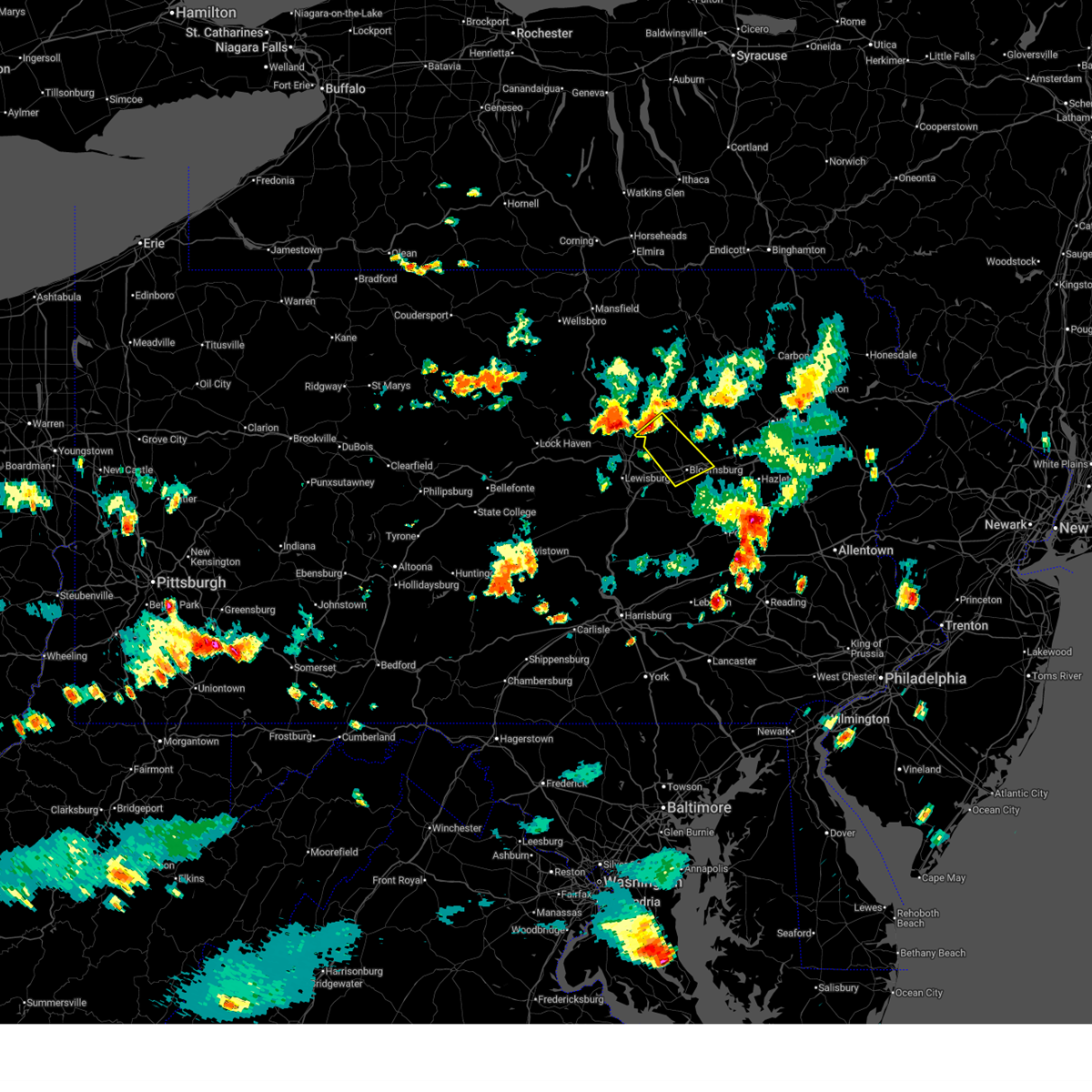 At 215 pm edt, severe thunderstorms were located along a line extending from near williamsport to near lamar to centre hall to whipple dam state park, moving east at 55 mph (radar indicated). Hazards include 70 mph wind gusts. Expect considerable tree damage. damage is likely to mobile homes, roofs, and outbuildings. severe thunderstorms will be near, williamsport, duboistown and cogan station around 220 pm edt. montoursville, reedsville, r. b. winter state park, yeagertown, carroll, montgomery, seven mountains, muncy, woodward and milroy around 230 pm edt. mifflinburg, sand bridge state park, alfarata, forest hill, hughesville, weikert, snyder-middleswart state park, troxelville, lairdsville and reeds gap state park around 240 pm edt. lewisburg, milton, biggertown, linntown, penns creek, mcalisterville, mcclure, montandon, new columbia and middleburg around 250 pm edt. other locations impacted by these severe thunderstorms include wagner, lime ridge, west milton, marion heights, siglerville, seven points, hartleton, garden view, oval and loganton. for those driving on interstate 80, this includes areas between the bellefonte and nescopek exits, specifically from mile markers 172 to 247. This includes interstate 180 from mile markers 1 to 29.