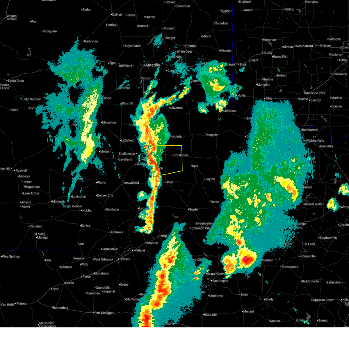 At 223 pm cdt, a severe thunderstorm was located over woodrow, or 9 miles west of slaton, moving northeast at 25 mph. this storm continues to show signs of rotation (radar indicated). Hazards include quarter size hail and 60 mph wind gusts. Hail damage to vehicles is expected. expect wind damage to roofs, siding and trees. locations impacted include, lubbock, slaton, ransom canyon, downtown lubbock, woodrow, lubbock international airport, and texas tech university. a tornado watch remains in effect until 500 pm cdt for northwestern texas. Possible.