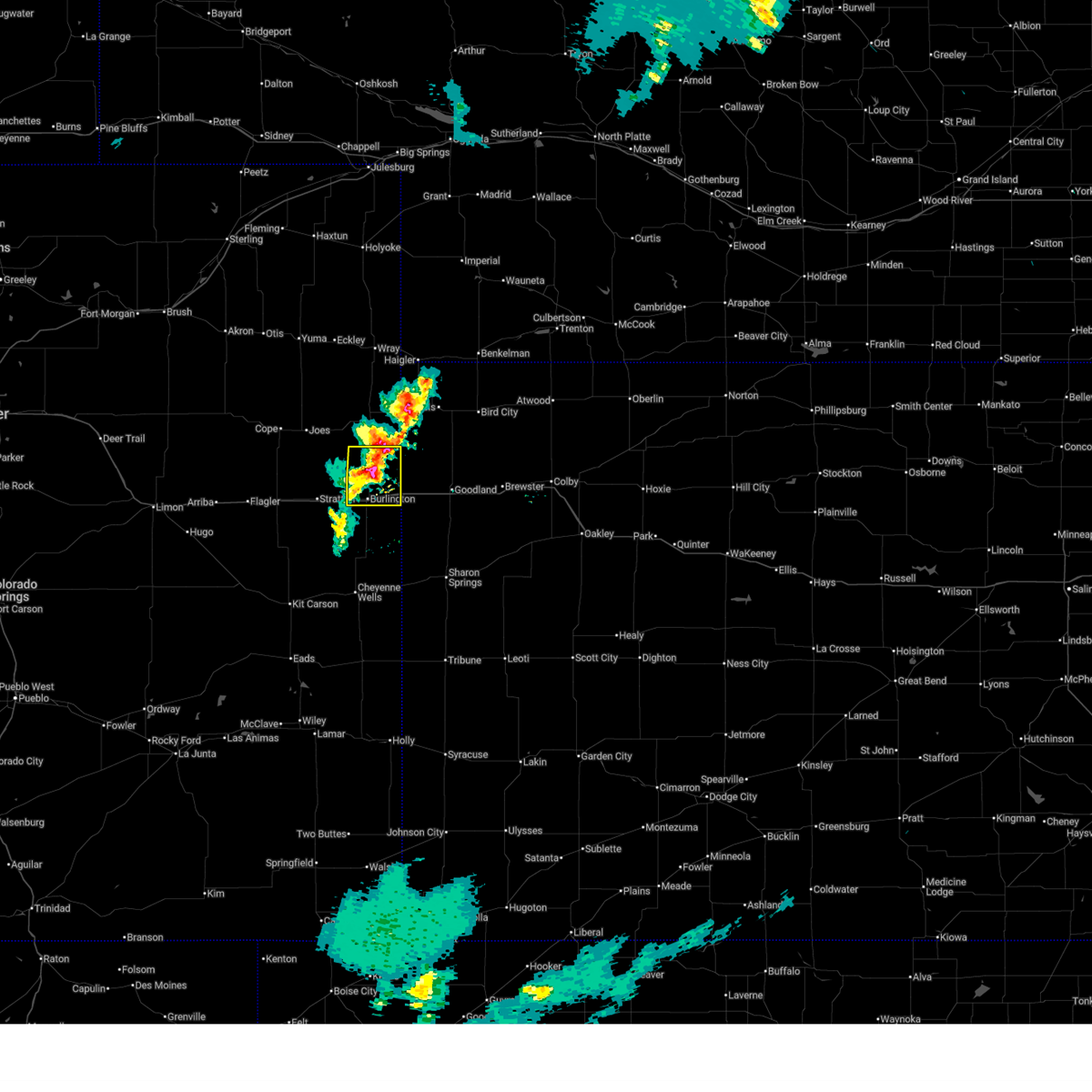 At 908 pm mdt, a severe thunderstorm was located near burlington, moving southeast at 40 mph (mesonet. a 67 mph wind gust was reported at the burlington airport). Hazards include 70 mph wind gusts and quarter size hail. Hail damage to vehicles is expected. expect considerable tree damage. wind damage is also likely to mobile homes, roofs, and outbuildings. locations impacted include, burlington, stratton, bethune, and vona. this includes the following highways, interstate 70 in colorado between mile markers 413 and 450. Highway 385 between mile markers 170 and 206, and near mile marker 211.