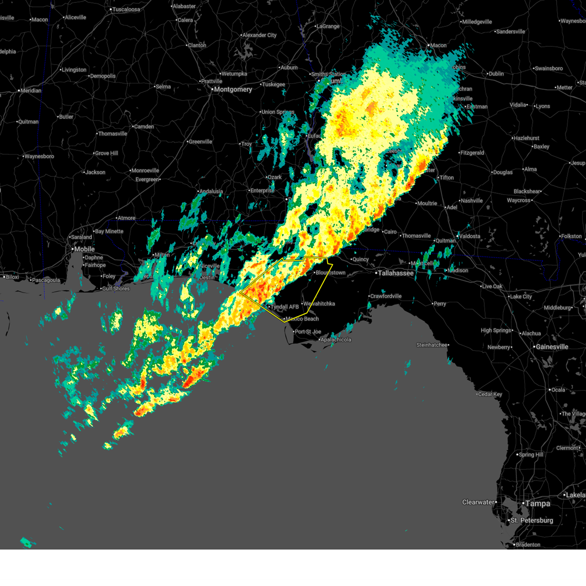 At 1121 pm cst, a severe thunderstorm capable of producing a tornado was located 8 miles south of panama city beach, moving northeast at 50 mph (radar indicated rotation). Hazards include tornado. Flying debris will be dangerous to those caught without shelter. mobile homes will be damaged or destroyed. damage to roofs, windows and vehicles will occur. tree damage is likely. this dangerous storm will be near, tyndall air force base around 1130 pm cst. panama city, callaway, springfield and hiland park around 1135 pm cst. lynn haven around 1140 pm cst. Other locations impacted by this tornadic thunderstorm include gainer spring, bayou george, biltmore beach, millville, camp flowers, parker, st andrews state park, recota beach, vicksburg and southport.