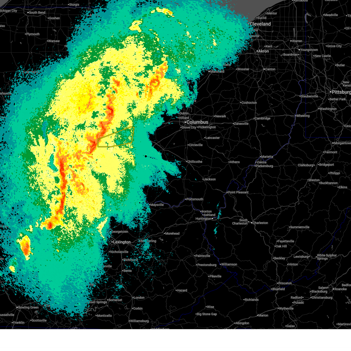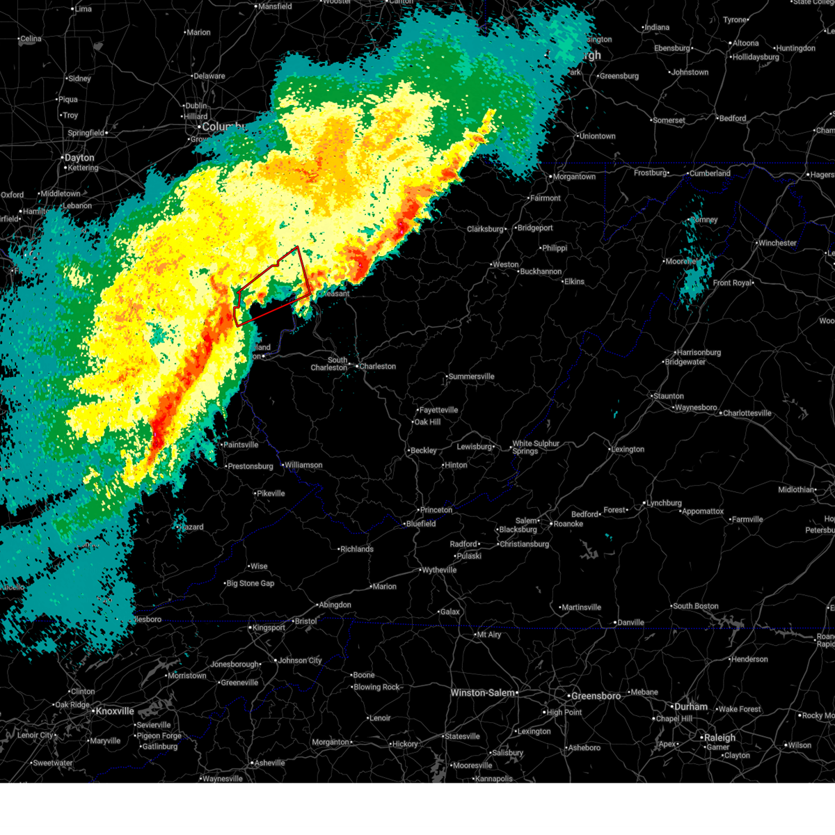 At 602 pm edt, national weather service doppler radar continued to indicate a line of severe thunderstorms capable of producing quarter size hail, and damaging winds in excess of 60 mph. these storms were located along a line extending from glenford to 10 miles west of new straitsville to 7 miles southwest of mabee, or along a line extending from 8 miles northwest of somerset to logan to 13 miles northeast of portsmouth, moving east at 35 mph. other locations in the warning include but are not limited to coalton, jackson, junction city, creola, mcarthur, hamden, wellston, zaleski, perry state forest, new lexington, lake hope state park, oak hill, shawnee, nelsonville, hemlock, radcliffe, buchtel, crooksville, wilkesville and gallia in addition to large hail and damaging winds, continuous cloud to ground lightning is occurring with this storm. move indoors immediately! lightning is one of natures number one killers. remember, if you can hear thunder, you are close enough to be struck by lightning. very heavy rain will also fall from this line of severe thunderstorms, and will cause water to pond on roads and quickly fill roadside ditches and small streams. a severe thunderstorm watch remains in effect until 1000 pm edt monday evening for central kentucky and southeast ohio and central west virginia. a severe thunderstorm watch also remains in effect until 100 am edt tuesday morning for central west virginia. please report severe weather to the national weather service by calling toll free, 800-401-9535, when you can do so safely. you may also report severe weather by posting your report to the charleston west virginia national weather service facebook page, or by using the twitter hashtag, nwsrlx.