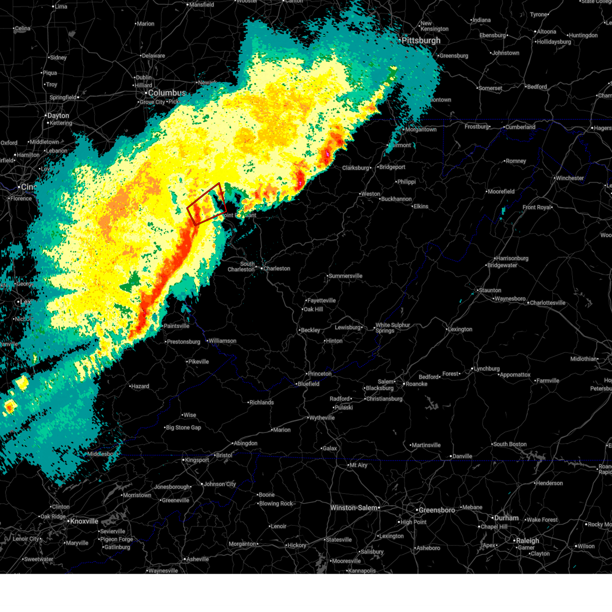 At 331 am edt, severe thunderstorms were located along a line extending from near chesterhill to 7 miles northwest of point pleasant, moving east at 45 mph (radar indicated). Hazards include 70 mph wind gusts. Expect considerable tree damage. damage is likely to mobile homes, roofs, and outbuildings. Locations impacted include, sandyville, point pleasant, belmont, stroud run state park, adamsville, pomeroy, mineralwells, little hocking, salem center, fleming, syracuse, dexter, amesville, racine, albany, gallia, peewee, rutland, parkersburg, and hartford city.