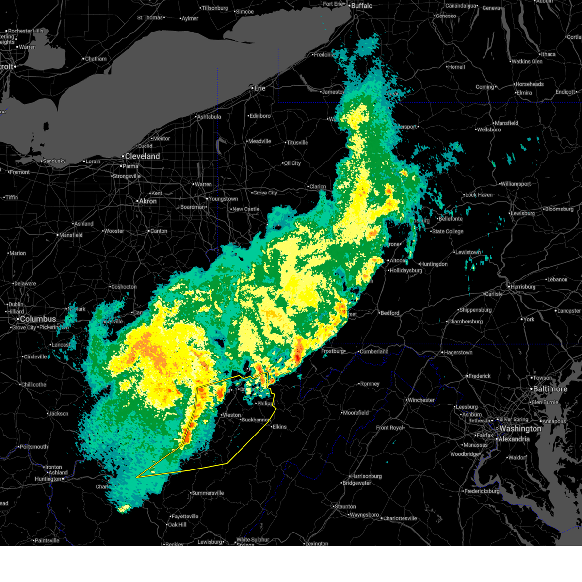 At 902 pm edt, severe thunderstorms were located along a line extending from near south connellsville to 6 miles north of belington, moving northeast at 70 mph (radar indicated). Hazards include 70 mph wind gusts. Expect considerable tree damage. damage is likely to mobile homes, roofs, and outbuildings. Locations impacted include, clarksburg, buckhannon, weston, philippi, bridgeport, shinnston, stonewood, nutter fort, lumberport, anmoore, jackson mill, stonewall jackson, rock cave, enterprise, west milford, lost creek, jane lew, flemington, meadland and ireland.