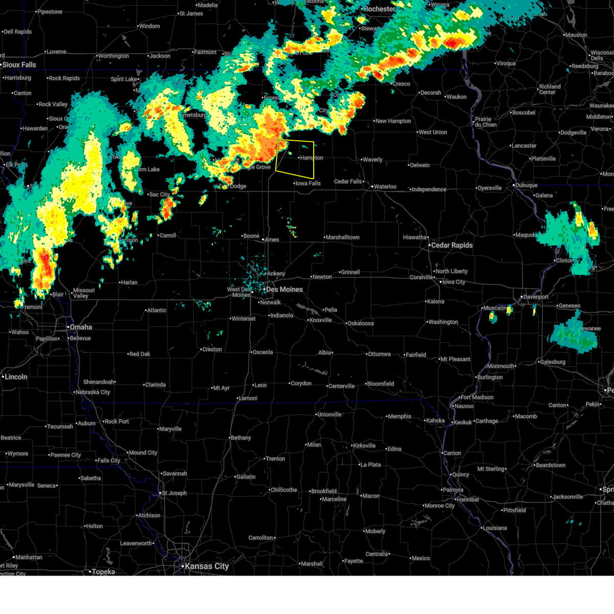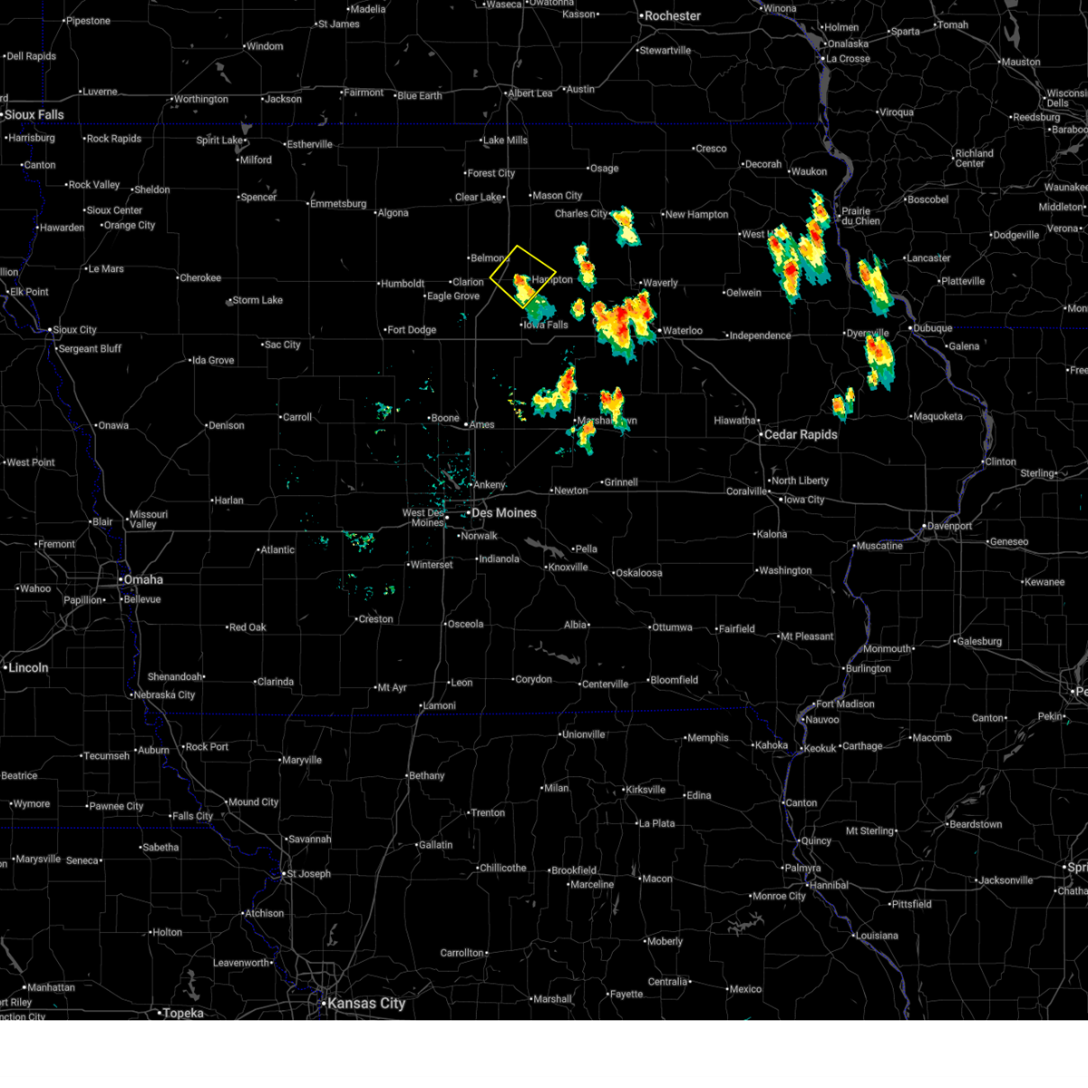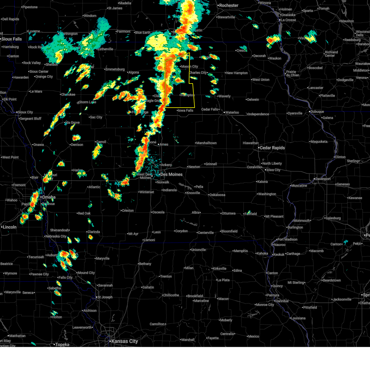 At 708 pm cdt, a severe thunderstorm was located near hampton, moving east at 15 mph (radar indicated). Hazards include golf ball size hail. People and animals outdoors will be injured. expect damage to roofs, siding, windows, and vehicles. locations impacted include, hampton, sheffield, latimer, coulter, hansell, chapin, hampton municipal airport and beeds lake state park. this includes interstate 35 between mile markers 164 and 176. A tornado watch remains in effect until 1000 pm cdt for north central iowa.