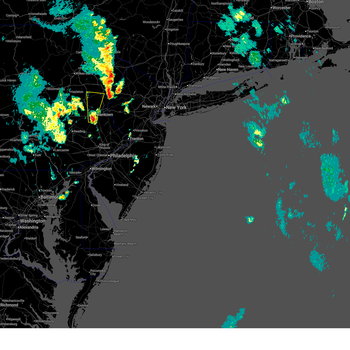At 416 pm est, severe thunderstorms were located along a line extending from claussville to near topton to pottstown to near kennett square, moving northeast at 55 mph (radar indicated). Hazards include 60 mph wind gusts and nickel size hail. Expect damage to roofs, siding, and trees. severe thunderstorms will be near, royersford, trappe, topton, bally, bechtelsville, ancient oaks, claussville, coffeetown, gilbertsville and schnecksville around 420 pm est. allentown, emmaus, east greenville, schwenksville, green lane, spring mount and lionville around 425 pm est. westtown, northampton, souderton, hatfield, lehigh university, beersville, cheyney, gradyville, geryville and lionville-marchwood around 430 pm est. bethlehem, quakertown, perkasie, hellertown, bath, steuben, paoli, newtown square, valley forge and springtown around 435 pm est. west norriton, forks, wilson, bedminster, nazareth, dublin, belfast, west easton, tatamy and riegelsville around 440 pm est. easton, norristown, east norriton, conshohocken, narberth, tinicum, pen argyl, wind gap, alpha and ferndale around 445 pm est. byram, ambler, bangor, harmony, frenchtown, milford, east bangor, bloomsbury, stockton and erwinna around 450 pm est. washington, jenkintown, high bridge, belvidere, rockledge, oxford, abington, glen gardner, hampton and brass castle around 455 pm est. Other locations impacted by these severe thunderstorms include boyertown, churchville, pottsgrove, hokendauqua, thorndale, stockertown, evansburg, malvern, west goshen and fort washington.