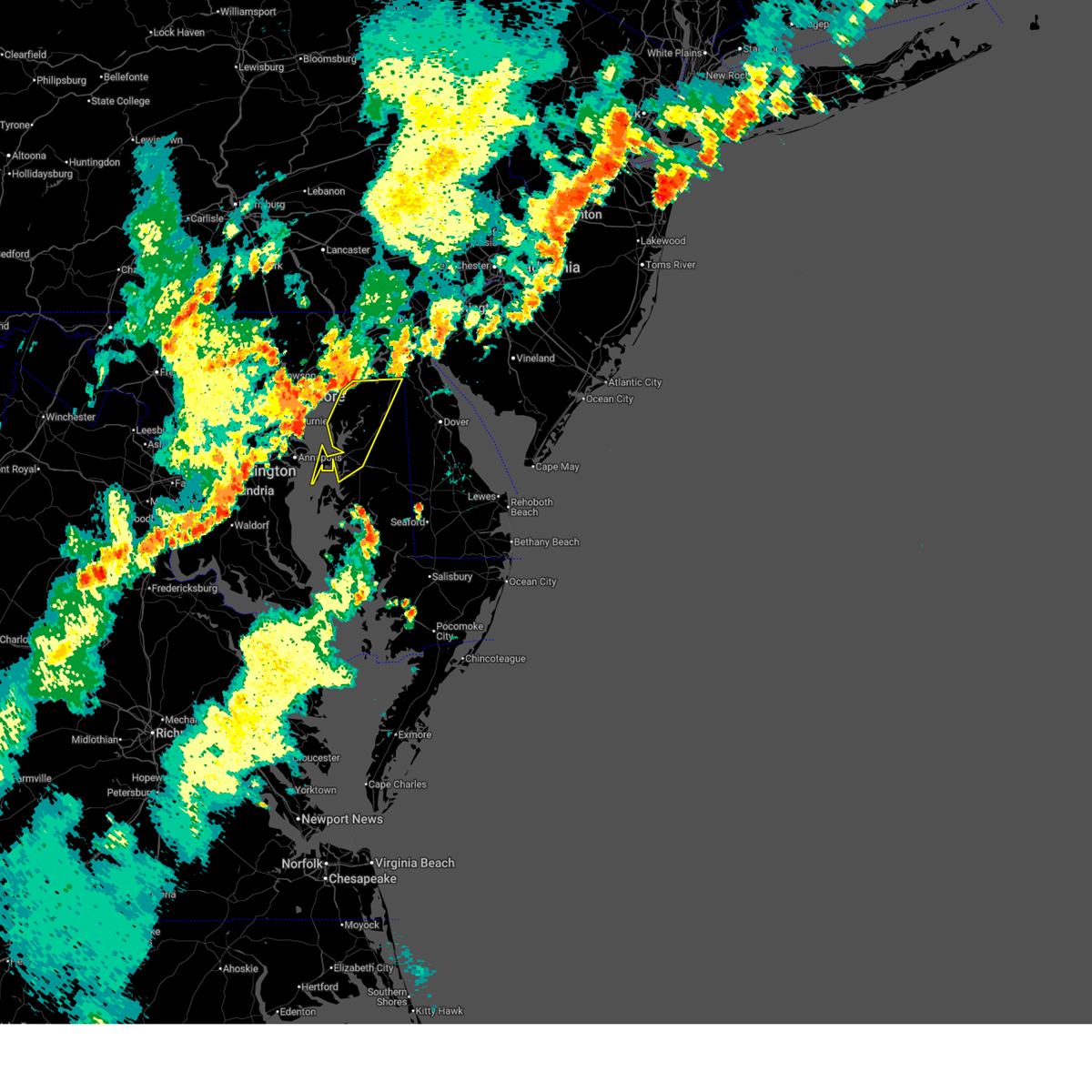 At 955 pm edt, doppler radar indicated a line of severe thunderstorms capable of producing damaging winds in excess of 60 mph. these storms were located over the central portion of chesapeake bay, and moving northeast at 40 mph.