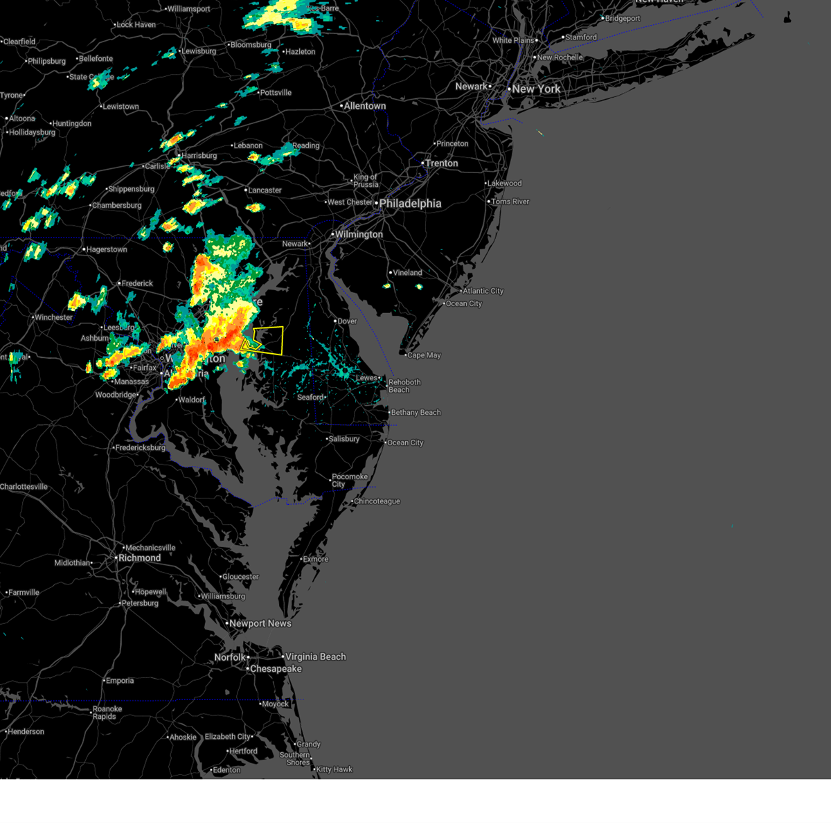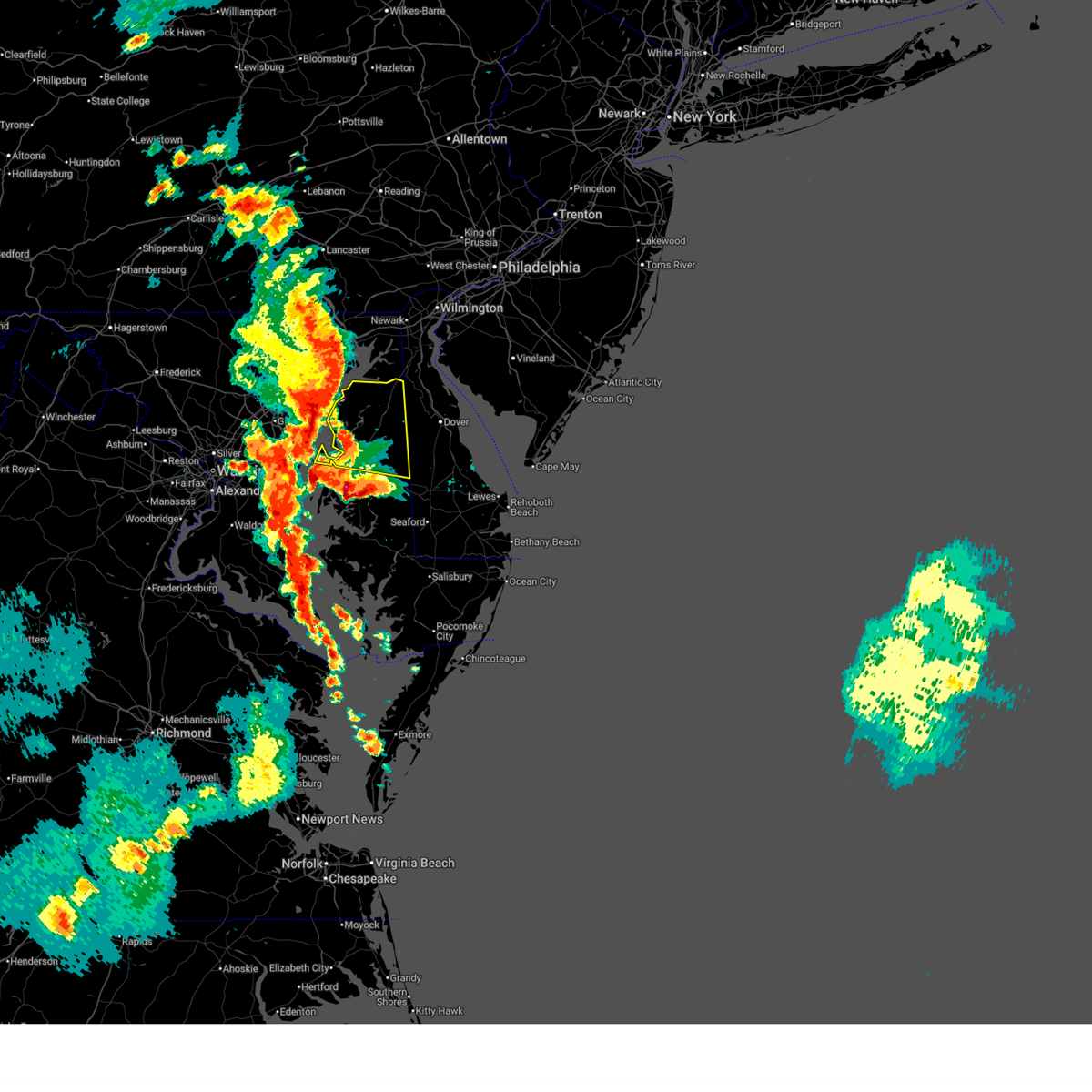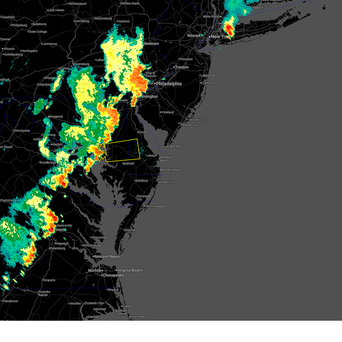 At 1045 pm edt, severe thunderstorms were located along a line extending from near port penn to near millington to overton, moving east at 30 mph (radar indicated). Hazards include 60 mph wind gusts. Damage to roofs, siding, trees, and power lines is possible. locations impacted include, dover, newark, middletown, easton, centerville, talbot, smyrna, chestertown, centreville, clayton, oakland, delaware city, ridgely, cheswold, rock hall, church hill, millington, sudlersville, goldsboro, and queen anne. This includes interstate 95 in delaware between mile markers 0 and 2.