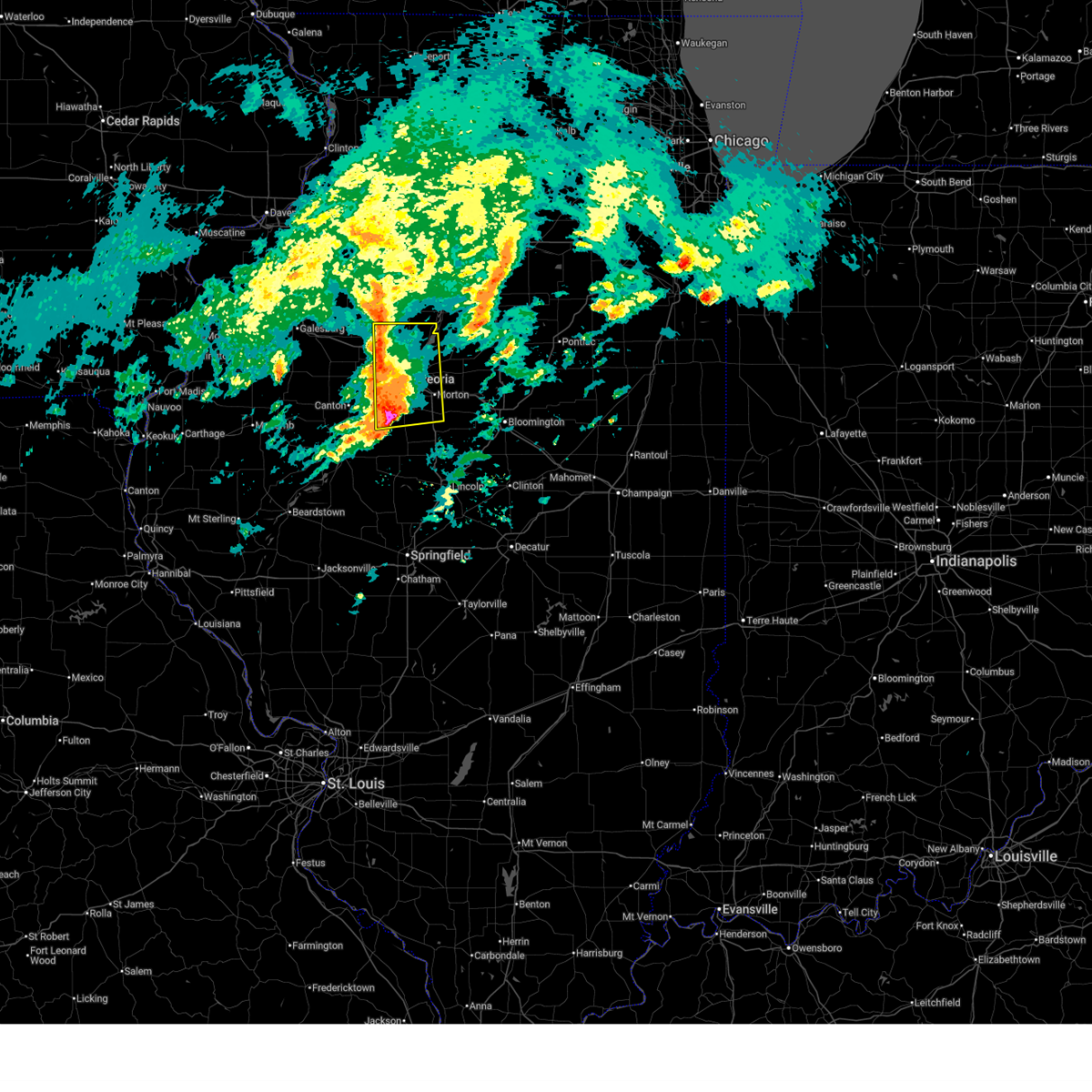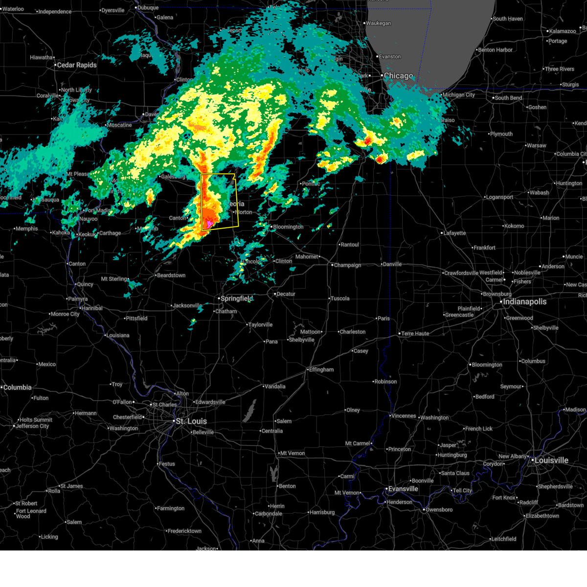 At 805 pm cdt, a severe thunderstorm capable of producing a tornado was located over west peoria, or near peoria, moving northeast at 30 mph (radar indicated rotation). Hazards include tornado and ping pong ball size hail. Flying debris will be dangerous to those caught without shelter. mobile homes will be damaged or destroyed. damage to roofs, windows and vehicles will occur. tree damage is likely. this dangerous storm will be near, peoria around 810 pm cdt. east peoria around 820 pm cdt. washington, germantown hills, spring bay and bay view gardens around 825 pm cdt. metamora and rome around 830 pm cdt. other locations impacted by this tornadic thunderstorm include peoria international airport, norwood, mossville, peoria heights and alta. this includes the following highways, interstate 474 between mile markers 0 and 5. Interstate 74 between mile markers 84 and 93.