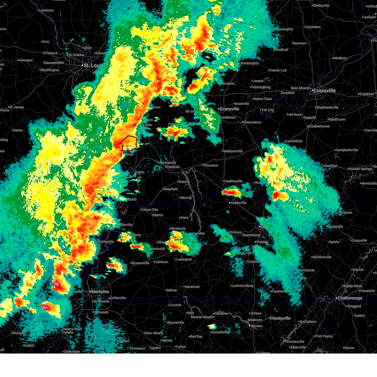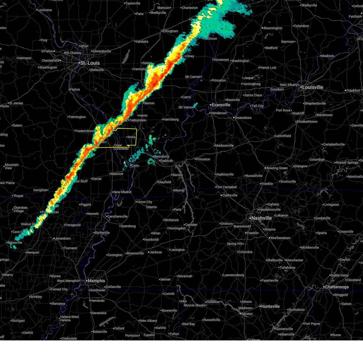At 802 am cdt, severe thunderstorms were located along a line extending from 6 miles east of anna to 6 miles northeast of la center to 6 miles south of bardwell to near hickman, moving northeast at 75 mph (radar indicated). Hazards include 70 mph wind gusts and penny size hail. Expect considerable tree damage. damage is likely to mobile homes, roofs, and outbuildings. locations impacted include, paducah, mayfield, metropolis, anna, fulton, hickman, jonesboro, vienna, clinton, la center, bardwell, wickliffe, lone oak, reidland, cobden, goreville, brookport, mounds, dongola, and barlow. this includes the following highways, interstate 24 in kentucky between mile markers 1 and 16. interstate 24 in illinois between mile markers 1 and 38. interstate 57 in illinois between mile markers 5 and 43. Interstate 69 in kentucky between mile markers 1 and 28.