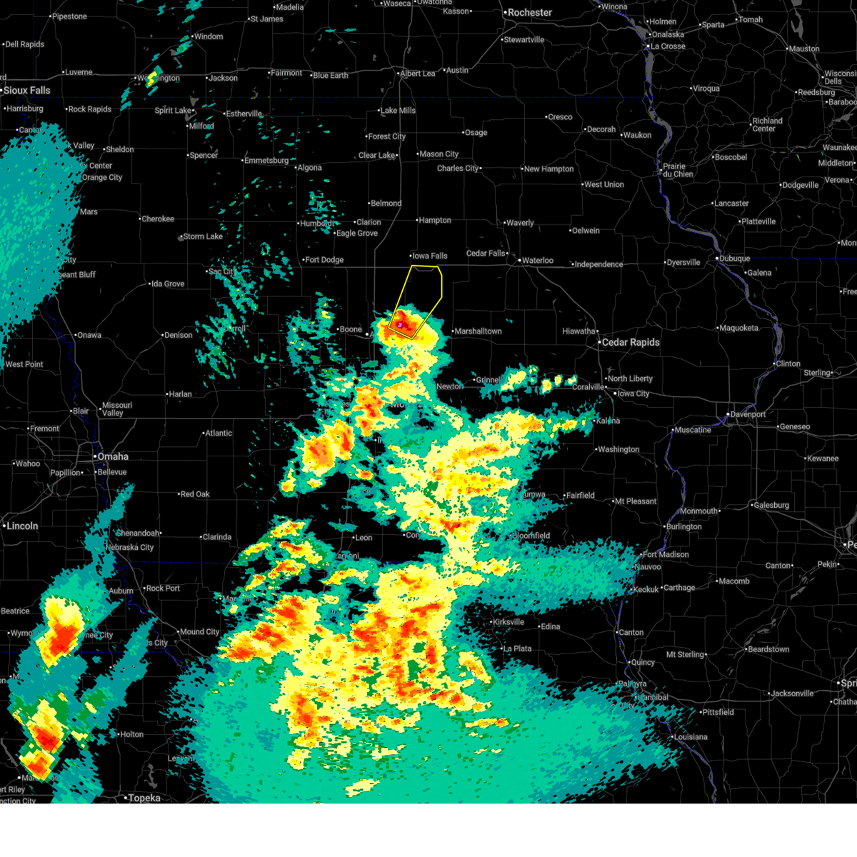 At 505 pm cdt, severe thunderstorms were located along a line extending from near webster city to 9 miles southwest of eldora to 10 miles northwest of rock creek lake, moving northeast at 60 mph (trained weather spotters. numerous reports of 60 to 70 mph winds have been reported with these storms with trees and powerlines down). Hazards include 70 mph wind gusts. Expect considerable tree damage. damage is likely to mobile homes, roofs, and outbuildings. locations impacted include, marshalltown, newton, webster city, nevada, iowa falls, eldora, grundy center, toledo, story city, tama, traer, reinbeck, ackley, state center, dysart, roland, jewell junction, dike, conrad and baxter. this includes the following highways, interstate 35 between mile markers 118 and 150. interstate 80 between mile markers 164 and 165. A tornado watch remains in effect until 700 pm cdt for central, north central and northeastern iowa.