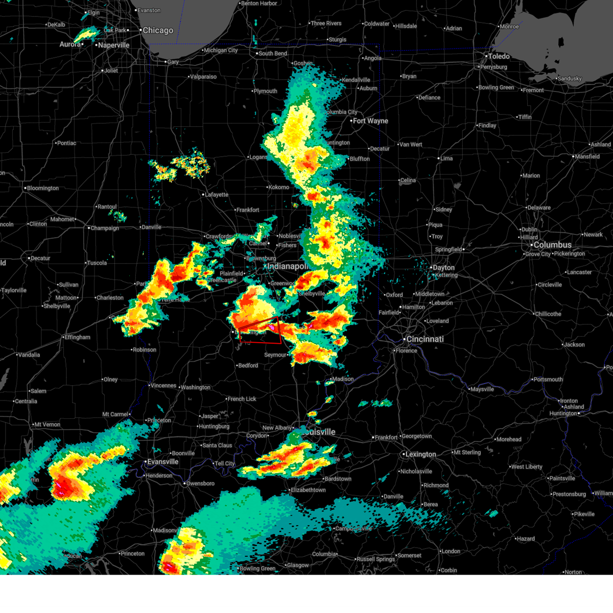 At 542 pm edt, severe thunderstorms were located along a line extending from 10 miles north of north vernon to near scottsburg, moving east at 45 mph (radar indicated). Hazards include 70 mph wind gusts and nickel size hail. Expect considerable tree damage. damage is likely to mobile homes, roofs, and outbuildings. locations impacted include, columbus, seymour, north vernon, brownstown, vernon, crothersville, westport, medora, elizabethtown, jonesville, millhousen, hayden, paris crossing, butlerville, grammer, nebraska, vallonia, azalia, cortland, and country squire lakes. This includes interstate 65 between mile markers 37 and 64.