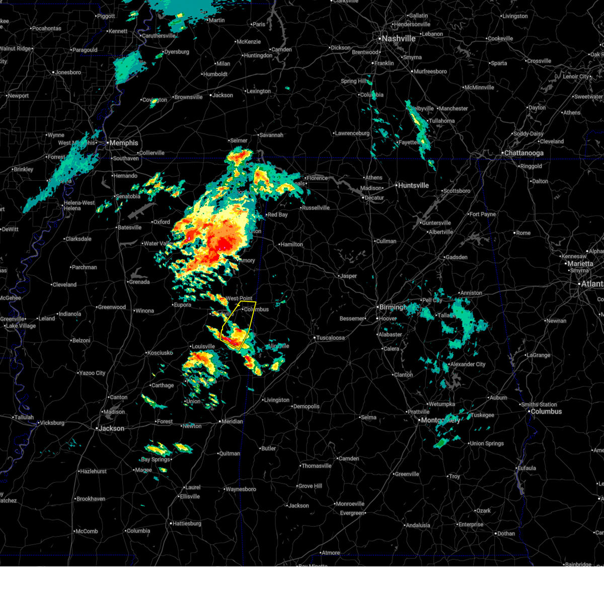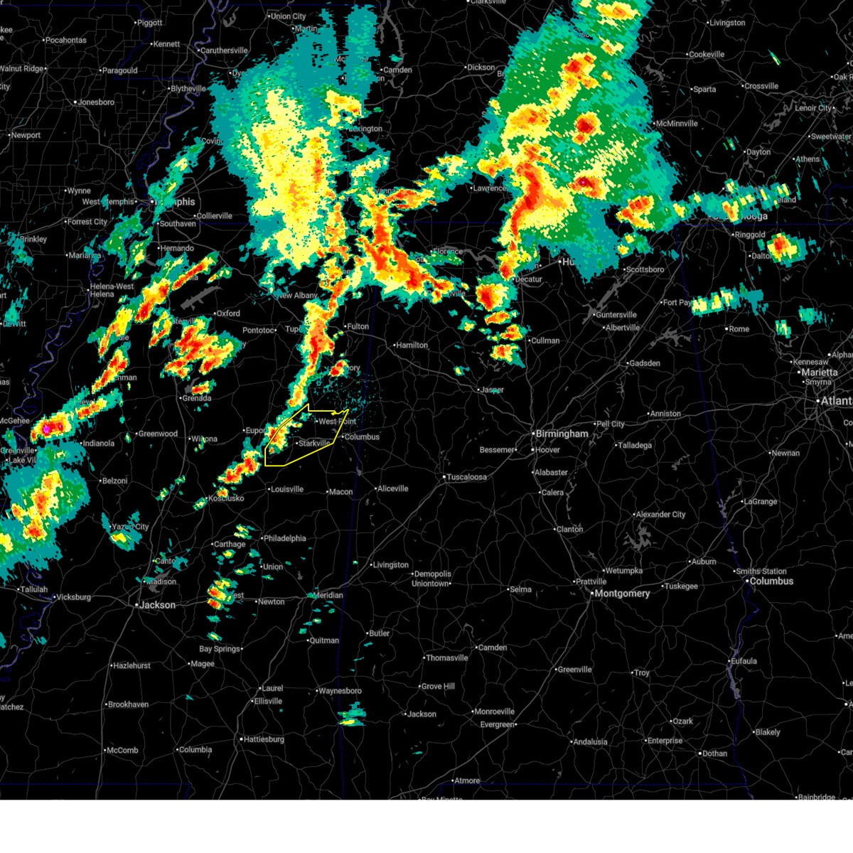 At 528 pm cdt, a severe thunderstorm was located over waverly, or near west point, moving south at 25 mph (radar indicated). Hazards include 60 mph wind gusts. Expect damage to roofs. siding and trees. this severe thunderstorm will be near, tibbee around 540 pm cdt. bent oak around 550 pm cdt. sessums around 600 pm cdt. crawford and oktoc around 615 pm cdt. Other locations impacted by this severe thunderstorm include artesia.