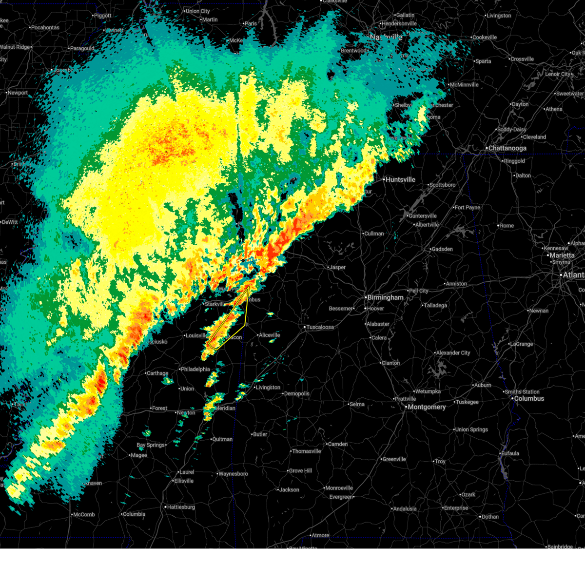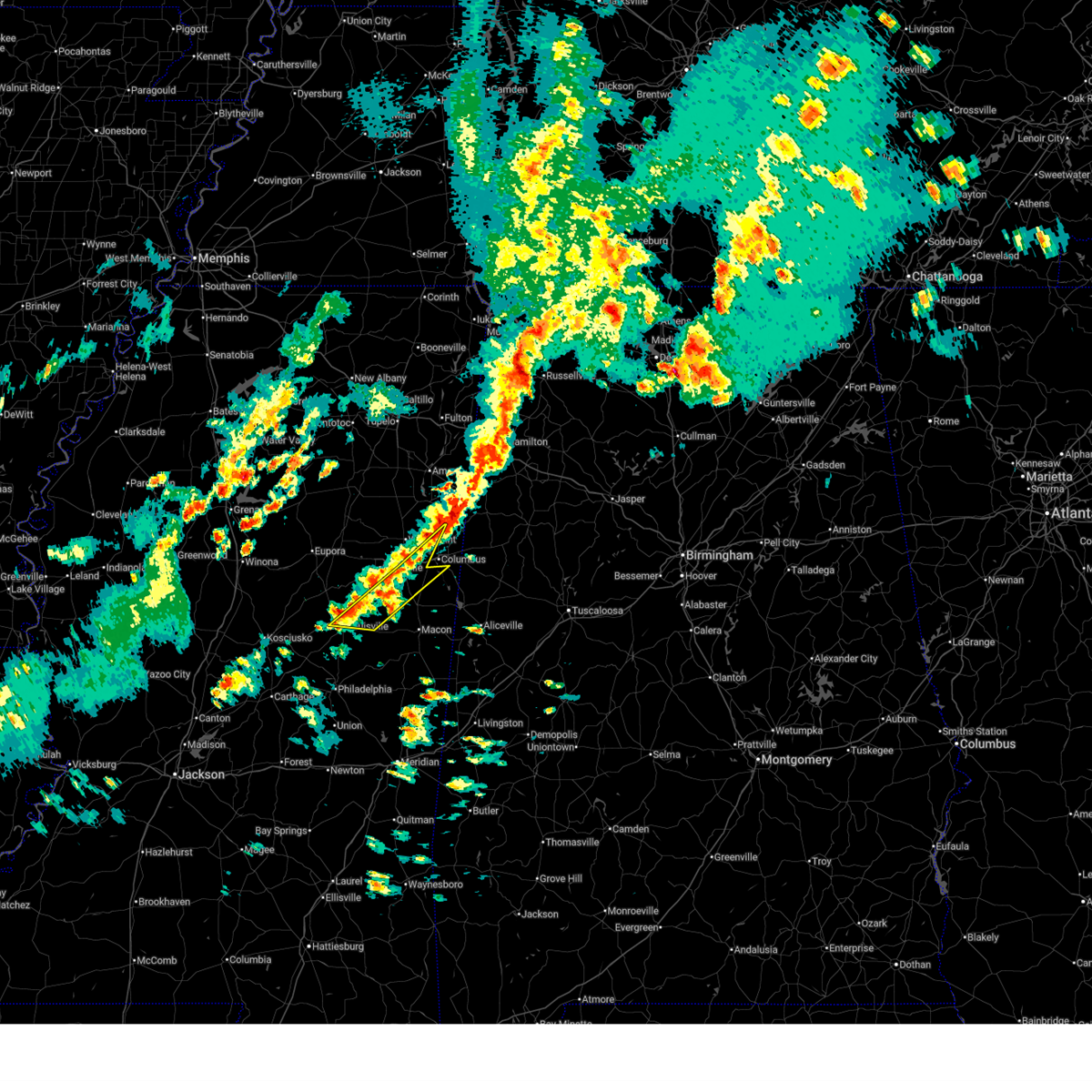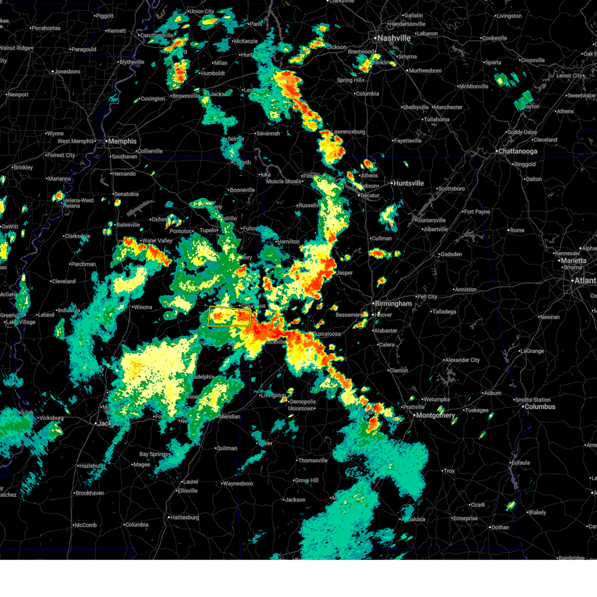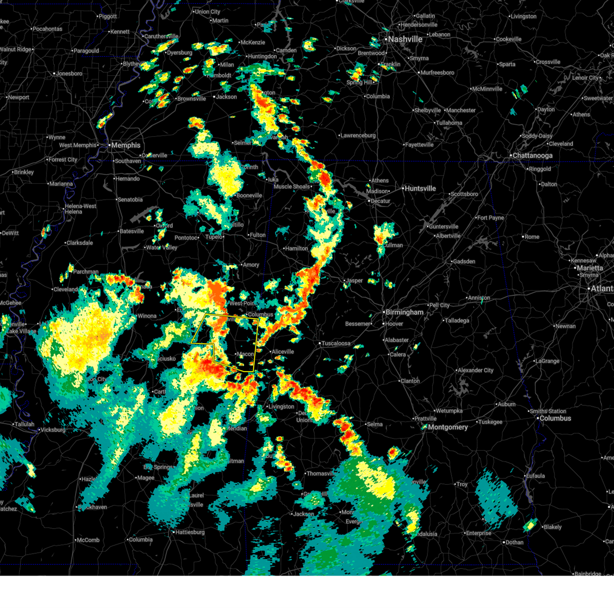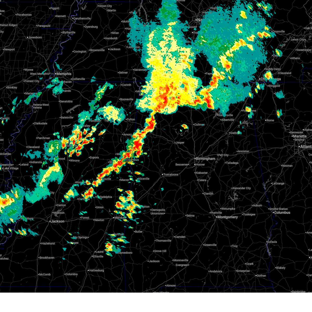 At 1251 am cdt, a severe thunderstorm was located near macon, moving northeast at 35 mph (radar indicated). Hazards include 60 mph wind gusts. Expect damage to roofs, siding, and trees. this severe storm will be near, deerbrook, brooksville, and macon around 1255 am cdt. bigbee valley around 110 am cdt. columbus around 125 am cdt. Steens around 150 am cdt.