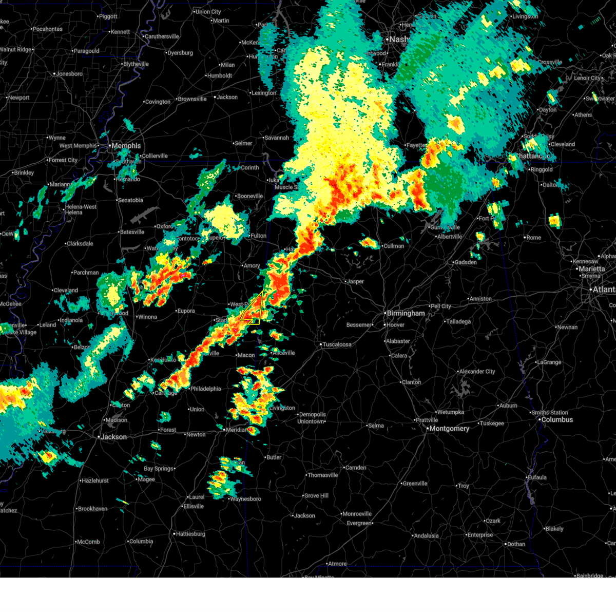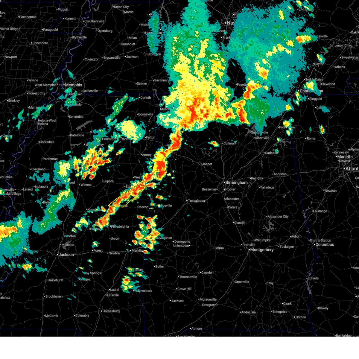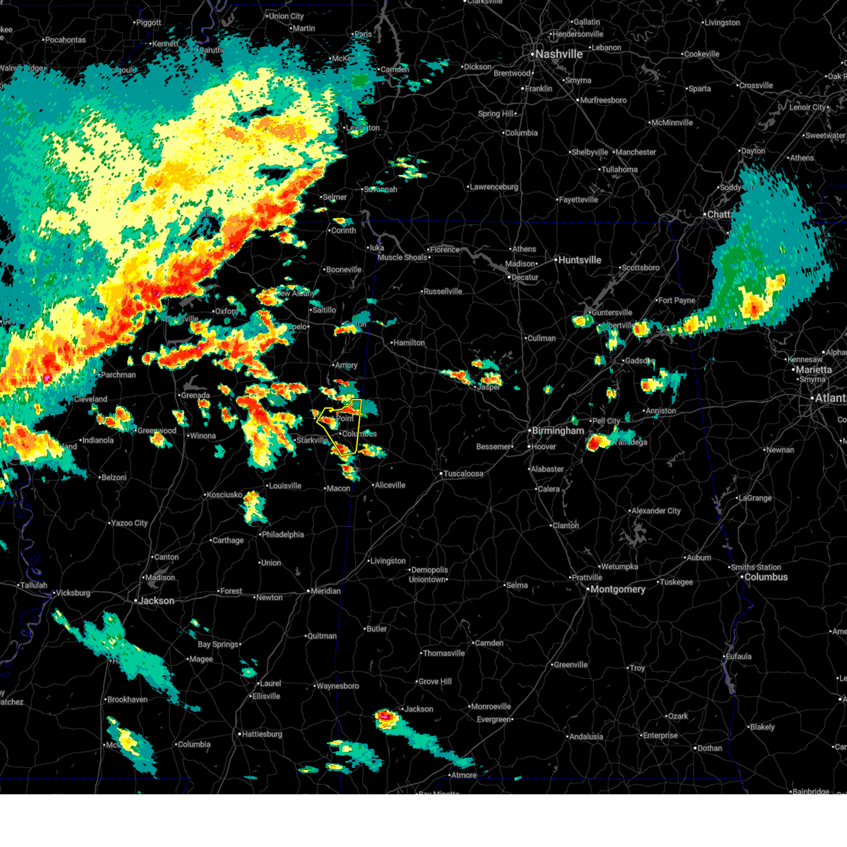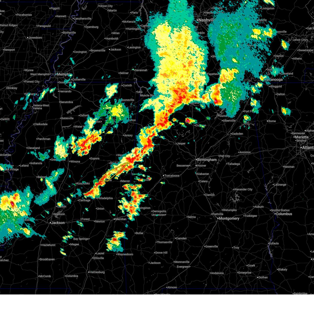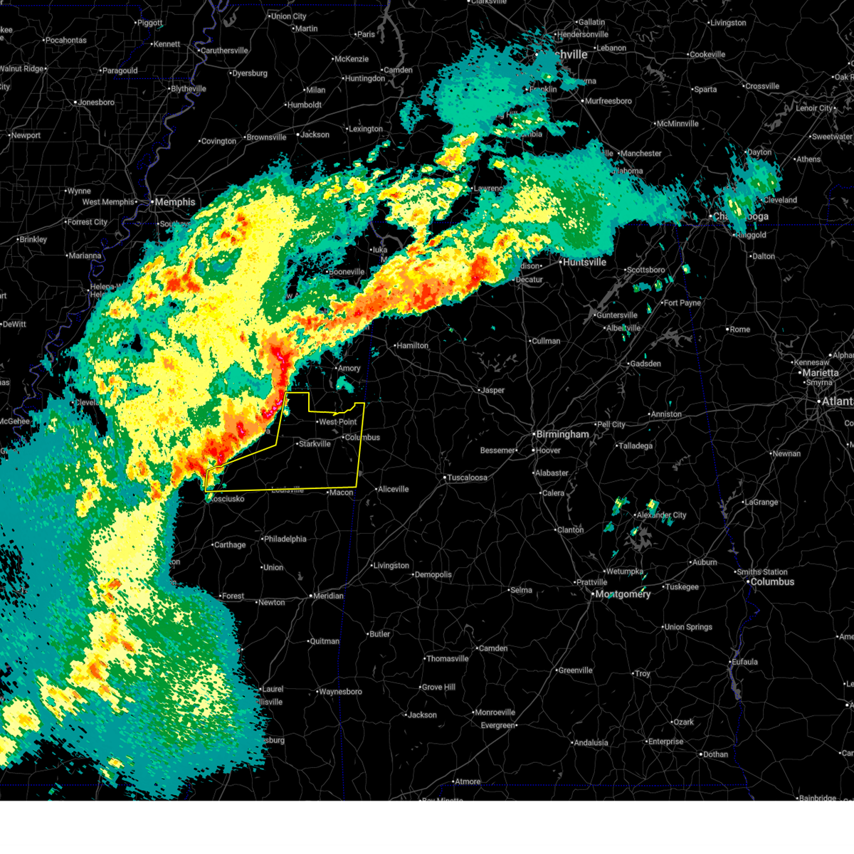 At 1251 am cdt, a severe thunderstorm was located near macon, moving northeast at 35 mph (radar indicated). Hazards include 60 mph wind gusts. Expect damage to roofs, siding, and trees. this severe storm will be near, deerbrook, brooksville, and macon around 1255 am cdt. bigbee valley around 110 am cdt. columbus around 125 am cdt. Steens around 150 am cdt.