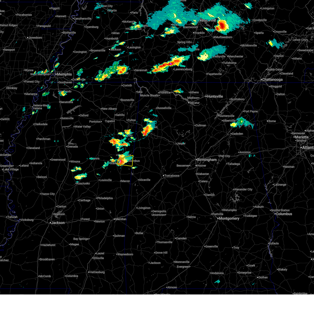 At 840 pm cdt, a severe thunderstorm was located near starkville, moving east at 45 mph (radar indicated). Hazards include 60 mph wind gusts. Expect damage to roofs, siding, and trees. this severe storm will be near, artesia and sessums around 845 pm cdt. bent oak around 850 pm cdt. Columbus around 900 pm cdt.