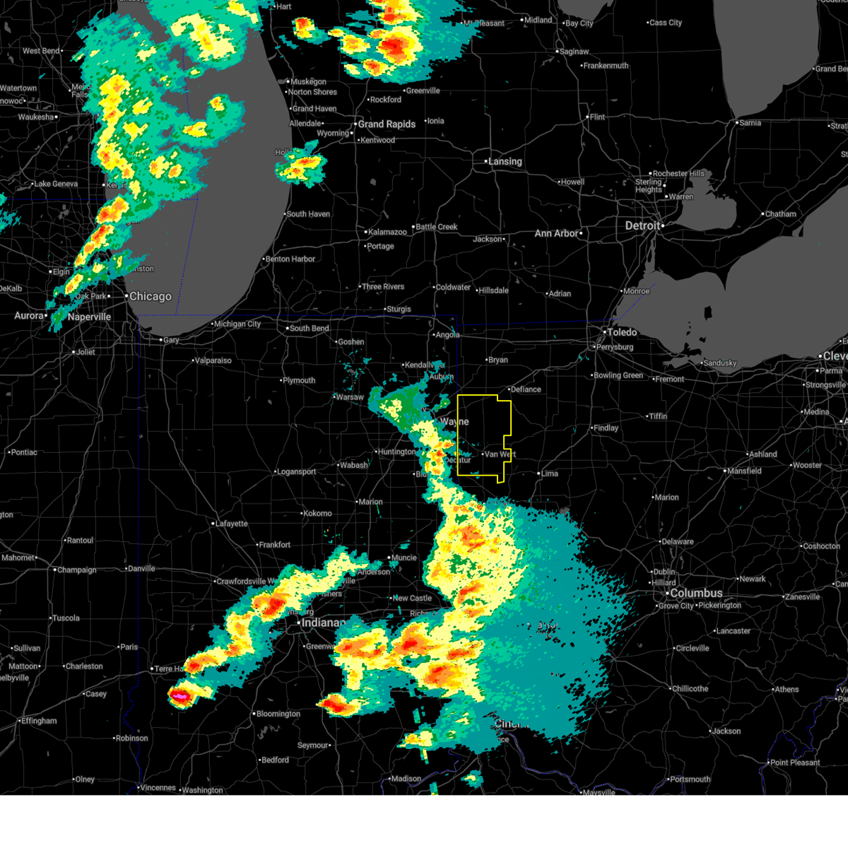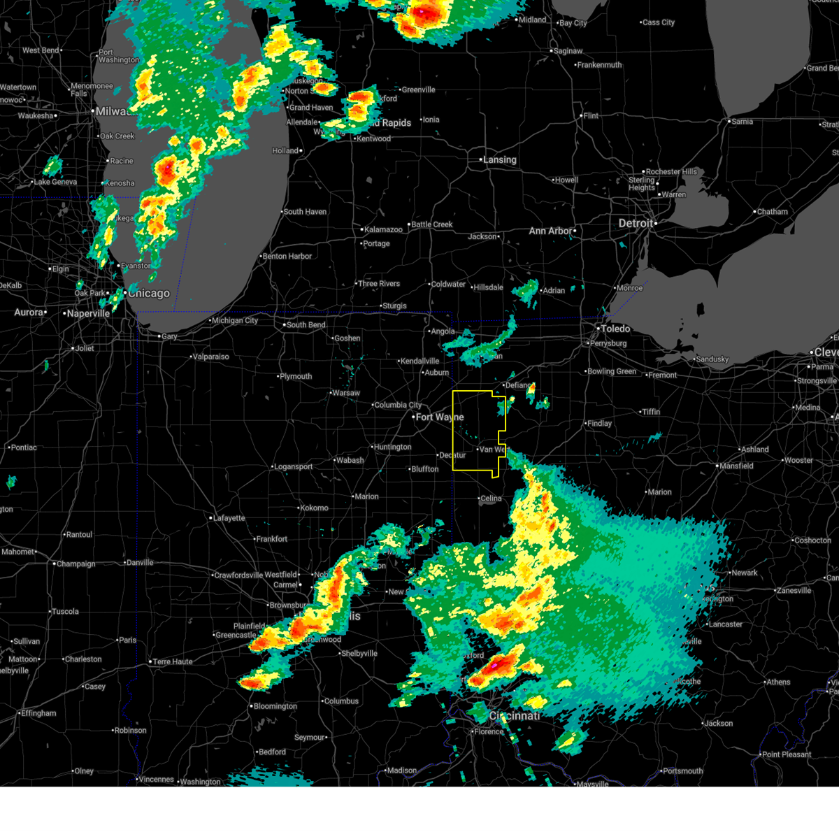 Svriwx the national weather service in northern indiana has issued a * severe thunderstorm warning for, van wert county in west central ohio, * until 1030 pm edt. * at 957 pm edt, a severe thunderstorm was located near decatur, moving northeast at 55 mph (radar indicated). Hazards include 60 mph wind gusts and penny size hail. expect damage to roofs, siding, and trees