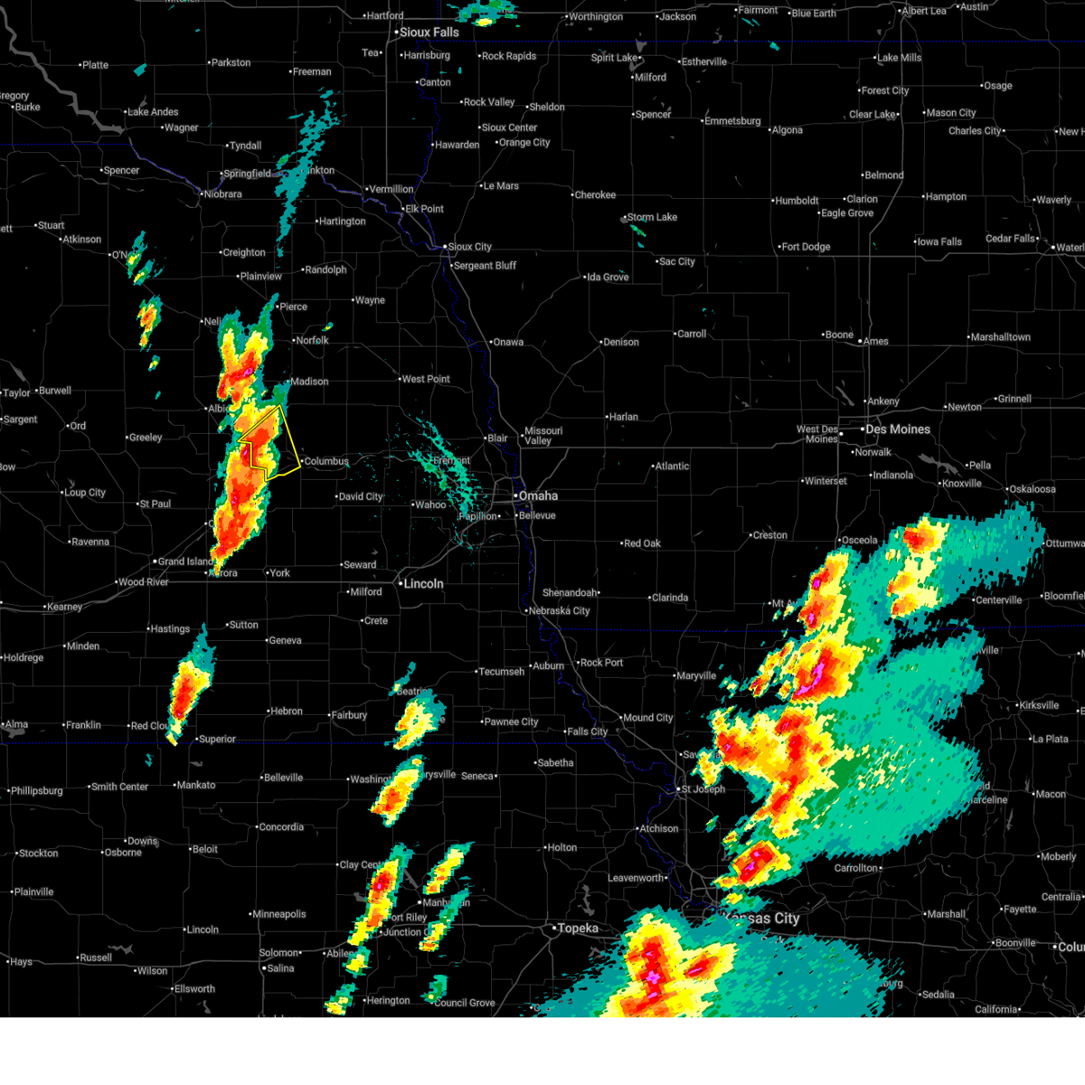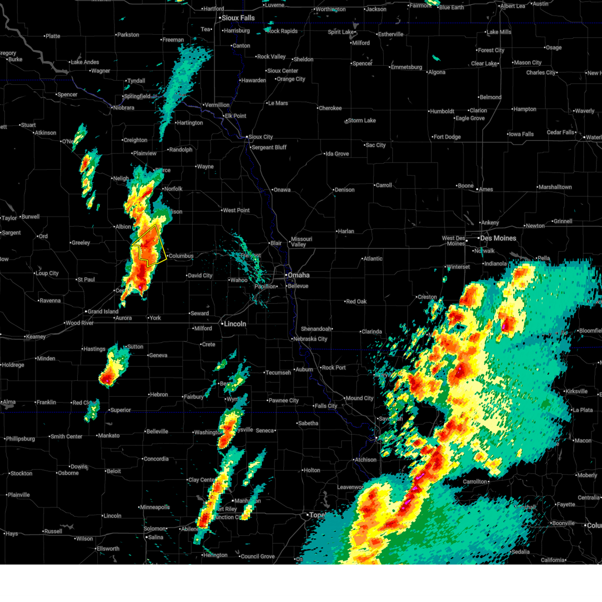 At 900 pm cdt, a severe thunderstorm was located over columbus, moving northeast at 40 mph. strong to severe storms were also occurring about 5 miles north of columbus (radar indicated). Hazards include 60 mph wind gusts and nickel size hail. Expect damage to roofs. siding and trees. locations impacted include, columbus, duncan, platte center, monroe, tarnov, lake north babcock campground, lake ocaonee, college view trailer park, camp pawnee, circle h trailer park, shell creek elementary school and central community college. this includes the following highways, highway 30 in nebraska between mile markers 366 and 381. Highway 81 in nebraska between milemarkers 110 and 126.