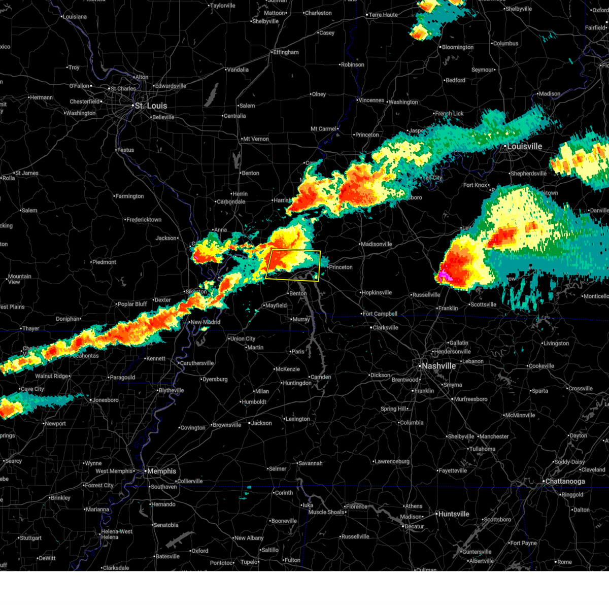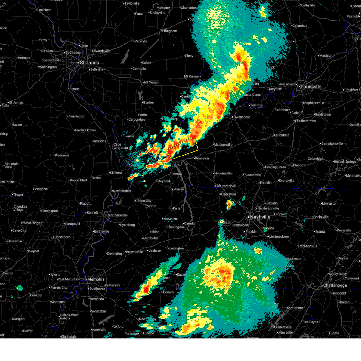At 840 pm cdt, a confirmed tornado was located over reidland, moving northeast at 65 mph (weather spotters confirmed tornado). Hazards include damaging tornado. Flying debris will be dangerous to those caught without shelter. mobile homes will be damaged or destroyed. damage to roofs, windows, and vehicles will occur. tree damage is likely. this tornado will be near, calvert city and ledbetter around 845 pm cdt. eddyville around 855 pm cdt. creswell and marion around 905 pm cdt. farmersville around 910 pm cdt. other locations impacted by this tornadic thunderstorm include dycusburg, fredonia, kuttawa, and smithland. this includes the following highways, interstate 24 in kentucky between mile markers 12 and 41. Interstate 69 in kentucky near mile marker 51, and between mile markers 69 and 74.