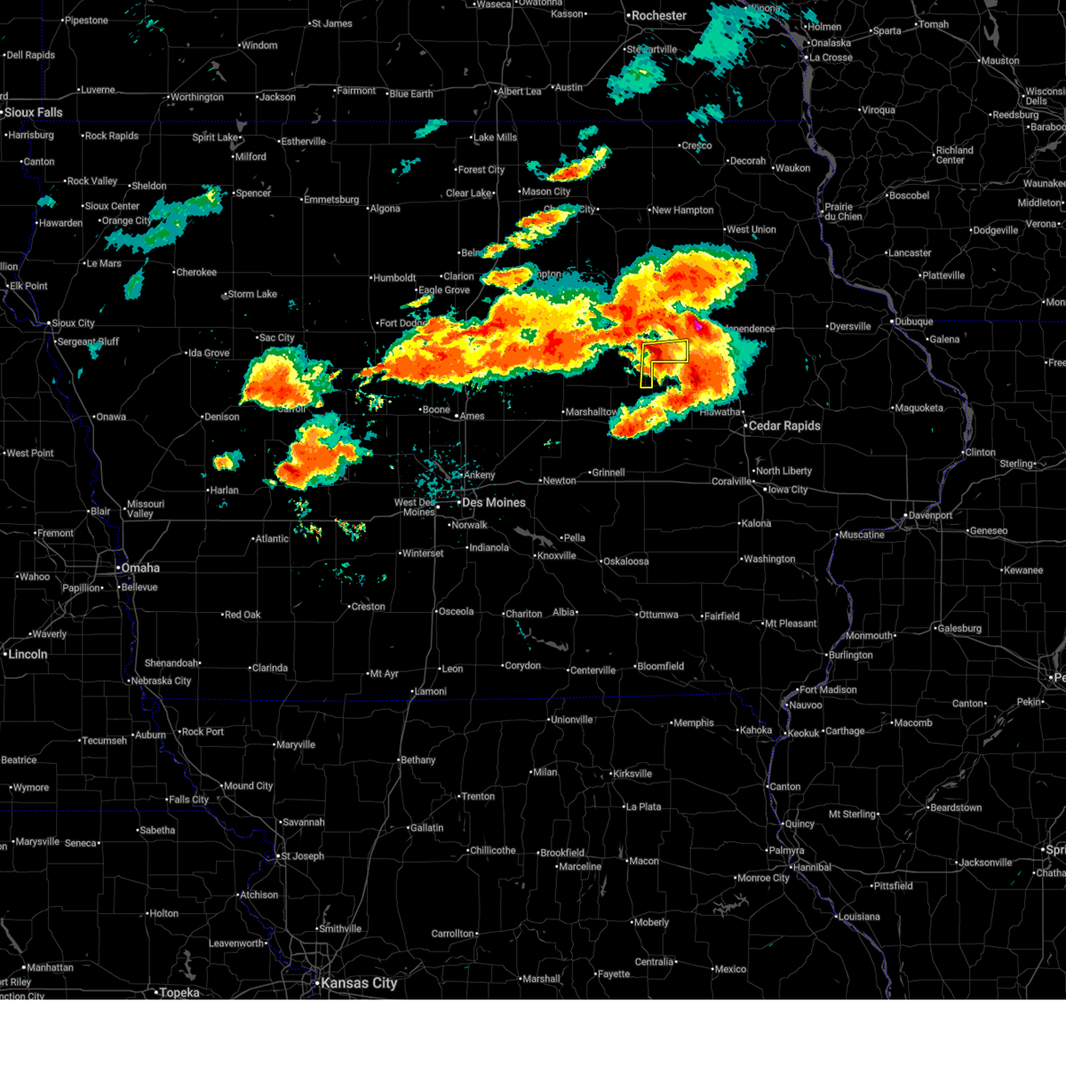 At 505 pm cdt, severe thunderstorms were located along a line extending from near webster city to 9 miles southwest of eldora to 10 miles northwest of rock creek lake, moving northeast at 60 mph (trained weather spotters. numerous reports of 60 to 70 mph winds have been reported with these storms with trees and powerlines down). Hazards include 70 mph wind gusts. Expect considerable tree damage. damage is likely to mobile homes, roofs, and outbuildings. locations impacted include, marshalltown, newton, webster city, nevada, iowa falls, eldora, grundy center, toledo, story city, tama, traer, reinbeck, ackley, state center, dysart, roland, jewell junction, dike, conrad and baxter. this includes the following highways, interstate 35 between mile markers 118 and 150. interstate 80 between mile markers 164 and 165. A tornado watch remains in effect until 700 pm cdt for central, north central and northeastern iowa.