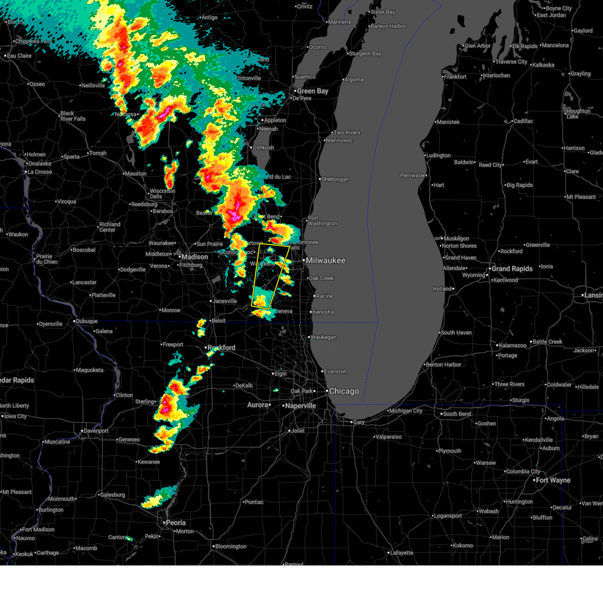 At 904 pm cdt, a severe thunderstorm was located near lake geneva, moving northeast at 30 mph (radar indicated). Hazards include 60 mph wind gusts. Expect damage to roofs. siding and trees. this severe thunderstorm will be near, browns lake around 915 pm cdt. east troy around 920 pm cdt. rochester and potter lake around 925 pm cdt. mukwonago, wind lake and waterford north around 930 pm cdt. other locations impacted by this severe thunderstorm include waterford, springfield, honey creek and burlington. A tornado watch remains in effect until 1000 pm cdt for southeastern wisconsin.
