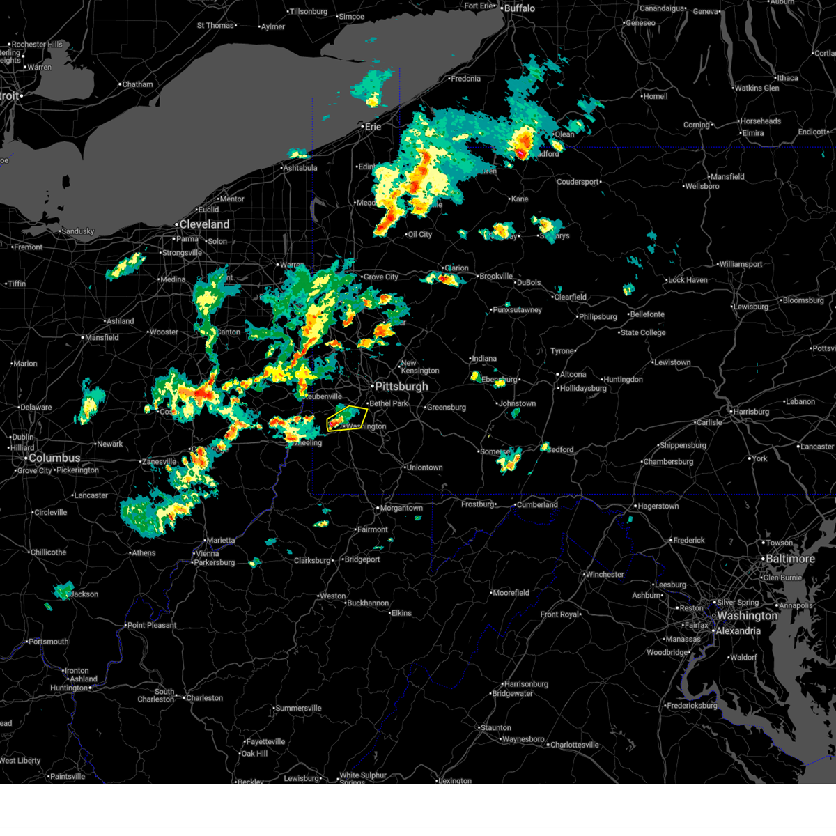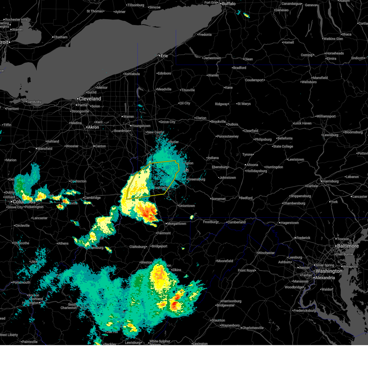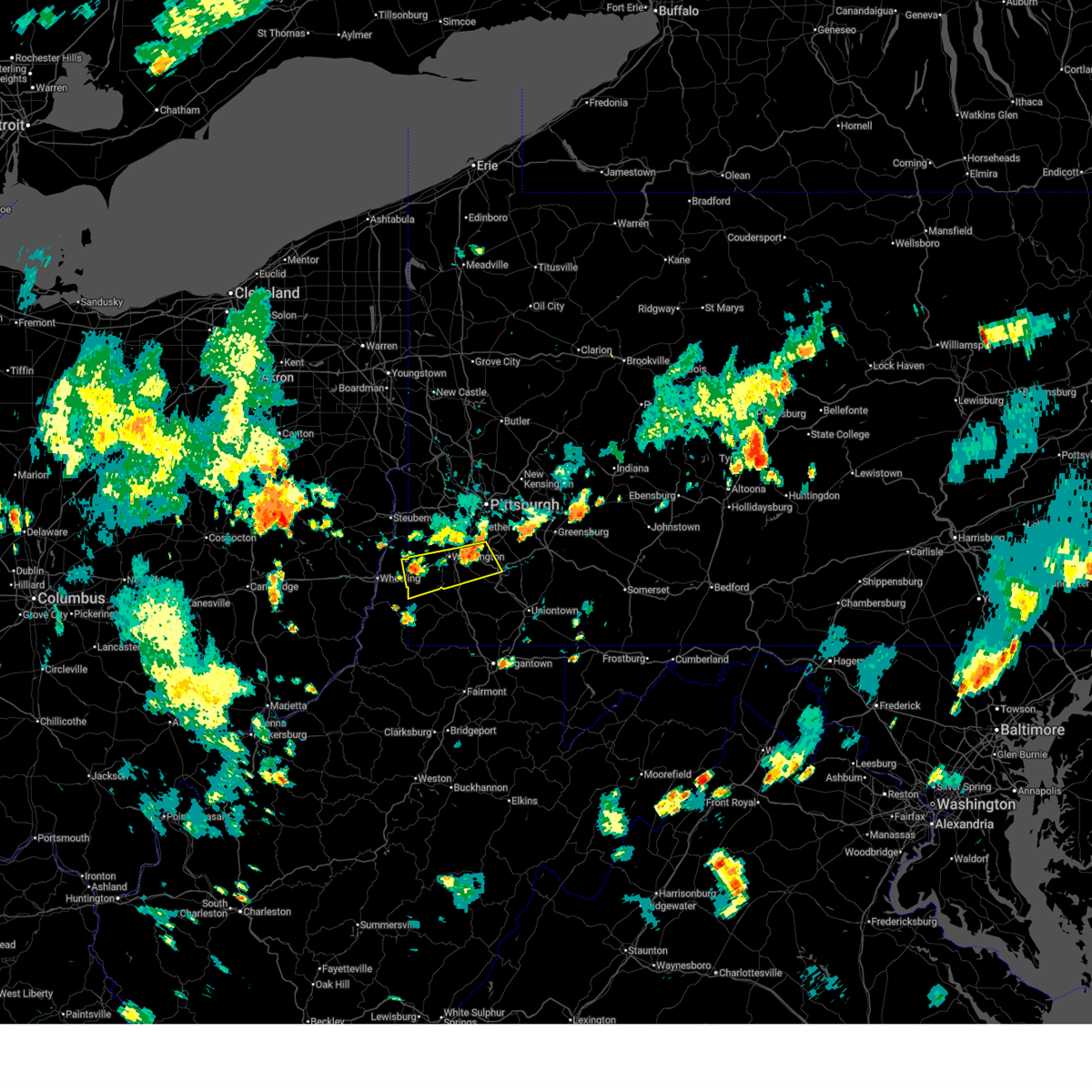 At 247 pm edt, a severe thunderstorm capable of producing a tornado was located near washington, moving east at 30 mph (radar indicated rotation). Hazards include tornado. Flying debris will be dangerous to those caught without shelter. mobile homes will be damaged or destroyed. damage to roofs, windows, and vehicles will occur. tree damage is likely. this dangerous storm will be near, gastonville and bentleyville around 315 pm edt. other locations impacted by this tornadic thunderstorm include ellsworth, finleyville, eighty four, cokeburg, scenery hill, green hills, baidland and beallsville. this includes interstate 70 in pennsylvania between mile markers 10 and 36. Please report severe weather by calling 412-262-1988, posting to the nws pittsburgh facebook page, or using twitter @nwspittsburgh.
