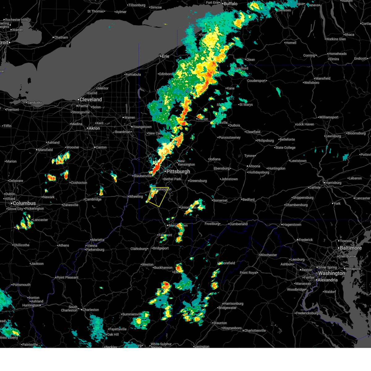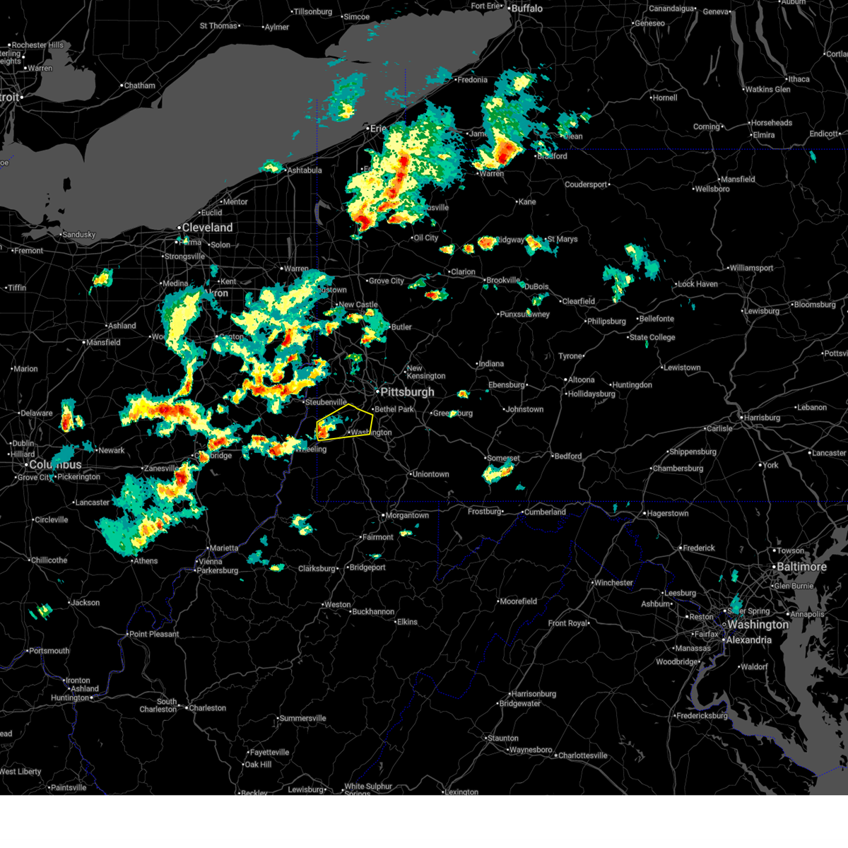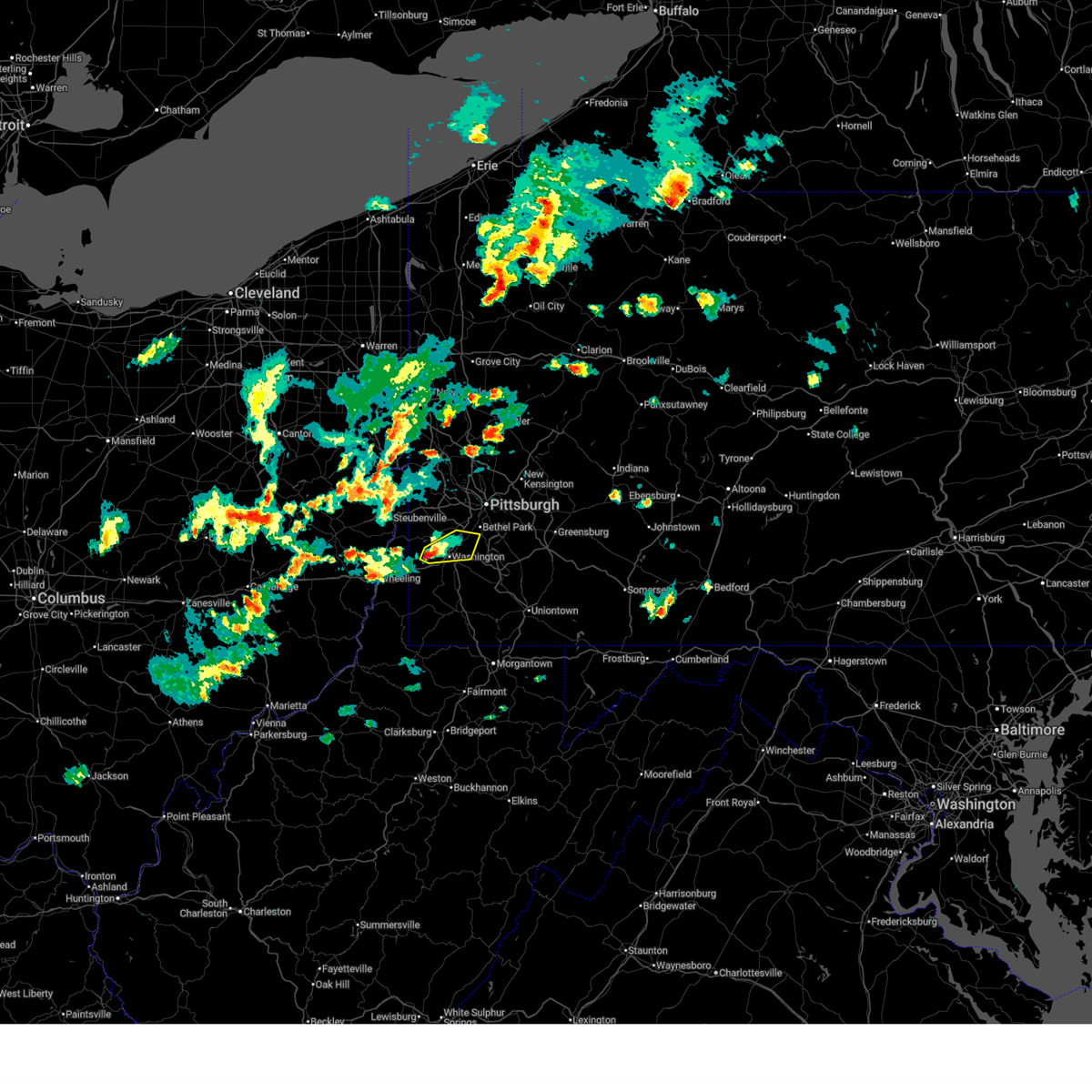 At 247 pm edt, a severe thunderstorm capable of producing a tornado was located near washington, moving east at 30 mph (radar indicated rotation). Hazards include tornado. Flying debris will be dangerous to those caught without shelter. mobile homes will be damaged or destroyed. damage to roofs, windows, and vehicles will occur. tree damage is likely. this dangerous storm will be near, gastonville and bentleyville around 315 pm edt. other locations impacted by this tornadic thunderstorm include ellsworth, finleyville, eighty four, cokeburg, scenery hill, green hills, baidland and beallsville. this includes interstate 70 in pennsylvania between mile markers 10 and 36. Please report severe weather by calling 412-262-1988, posting to the nws pittsburgh facebook page, or using twitter @nwspittsburgh.