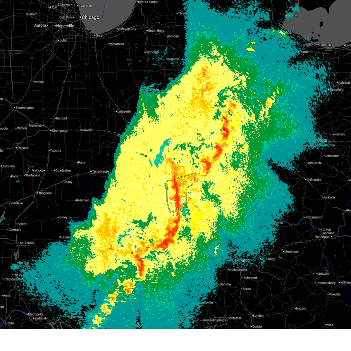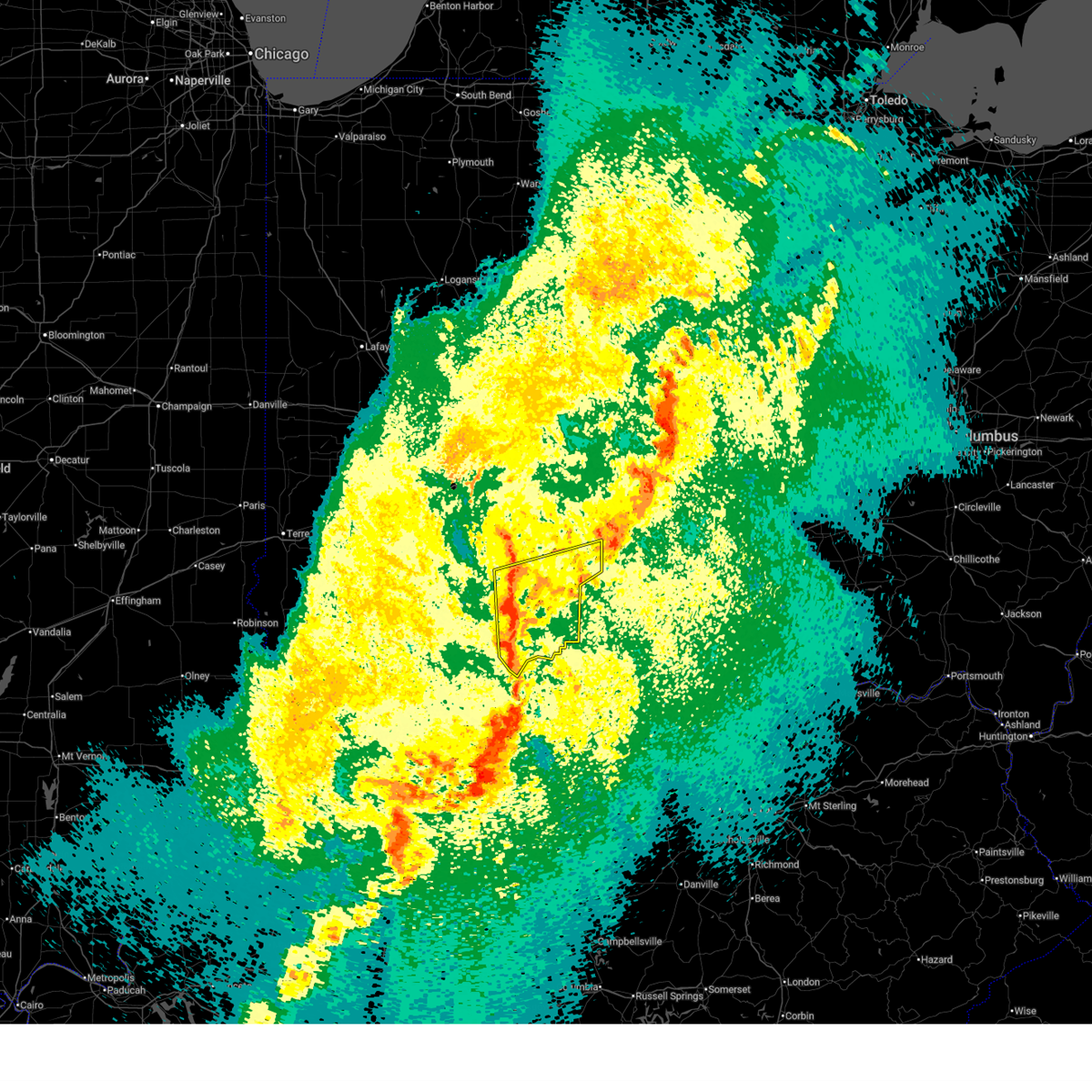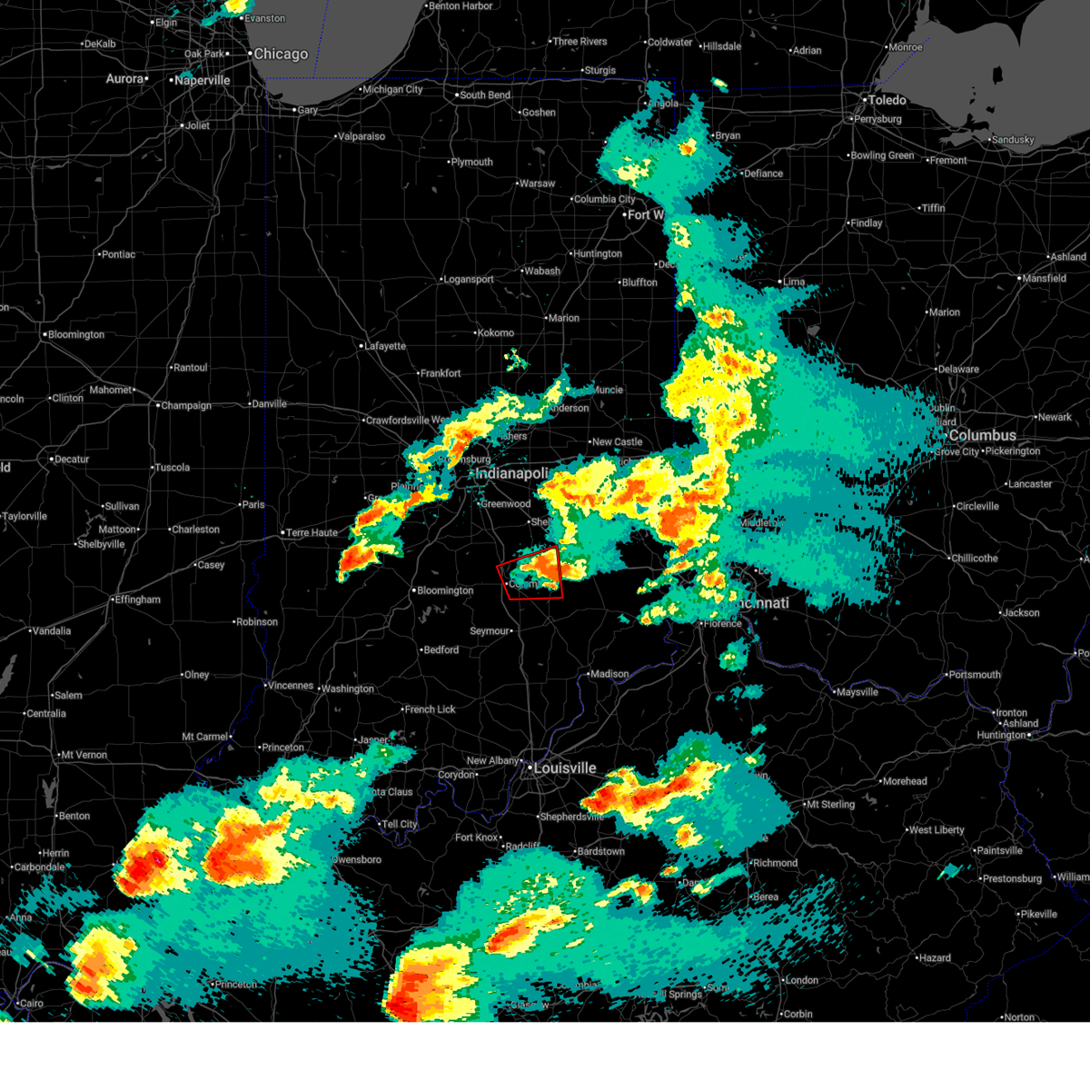 At 624 pm edt, a severe thunderstorm was located near columbus, moving southeast at 15 mph (radar indicated). Hazards include 60 mph wind gusts and quarter size hail. Hail damage to vehicles is expected. expect wind damage to roofs, siding, and trees. this severe thunderstorm will be near, grammer around 630 pm edt. jonesville and azalia around 635 pm edt. this includes interstate 65 between mile markers 54 and 62. hail threat, radar indicated max hail size, 1. 00 in wind threat, radar indicated max wind gust, 60 mph.