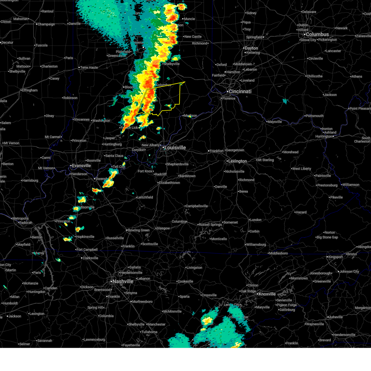 At 801 pm edt, a confirmed large and extremely dangerous tornado was located near columbus, moving east at 50 mph. this is a particularly dangerous situation. take cover now! (radar confirmed tornado). Hazards include damaging tornado. You are in a life-threatening situation. flying debris may be deadly to those caught without shelter. mobile homes will be destroyed. considerable damage to homes, businesses, and vehicles is likely and complete destruction is possible. locations impacted include, columbus, nashville, edinburgh, elizabethtown, clifford, spurgeons corner, stone head, gnaw bone, story, and taylorsville. This includes interstate 65 between mile markers 60 and 80.