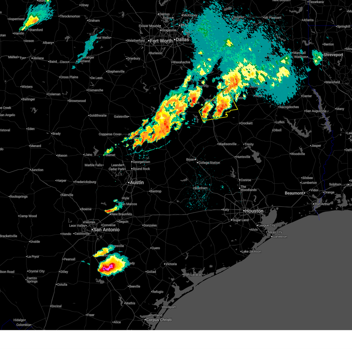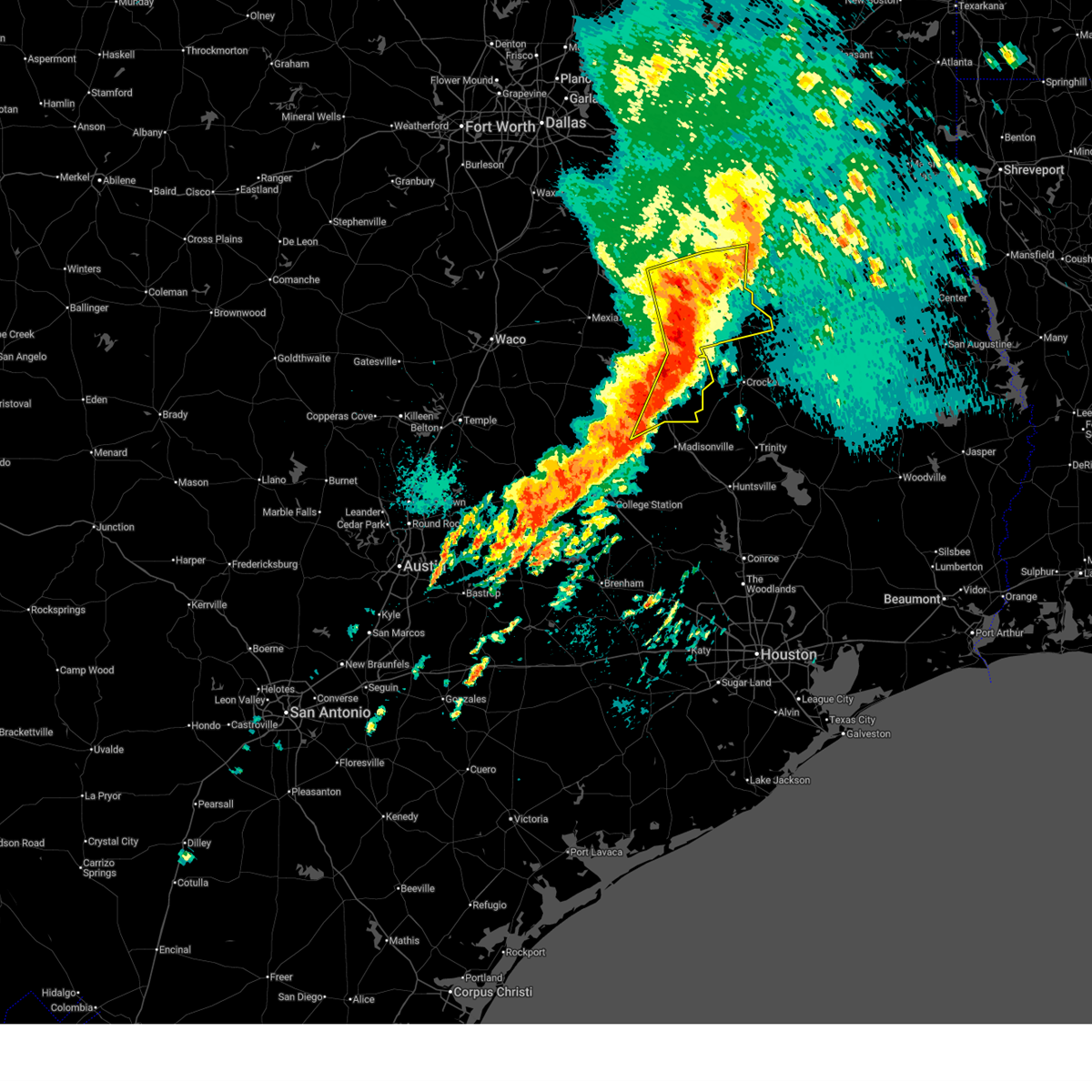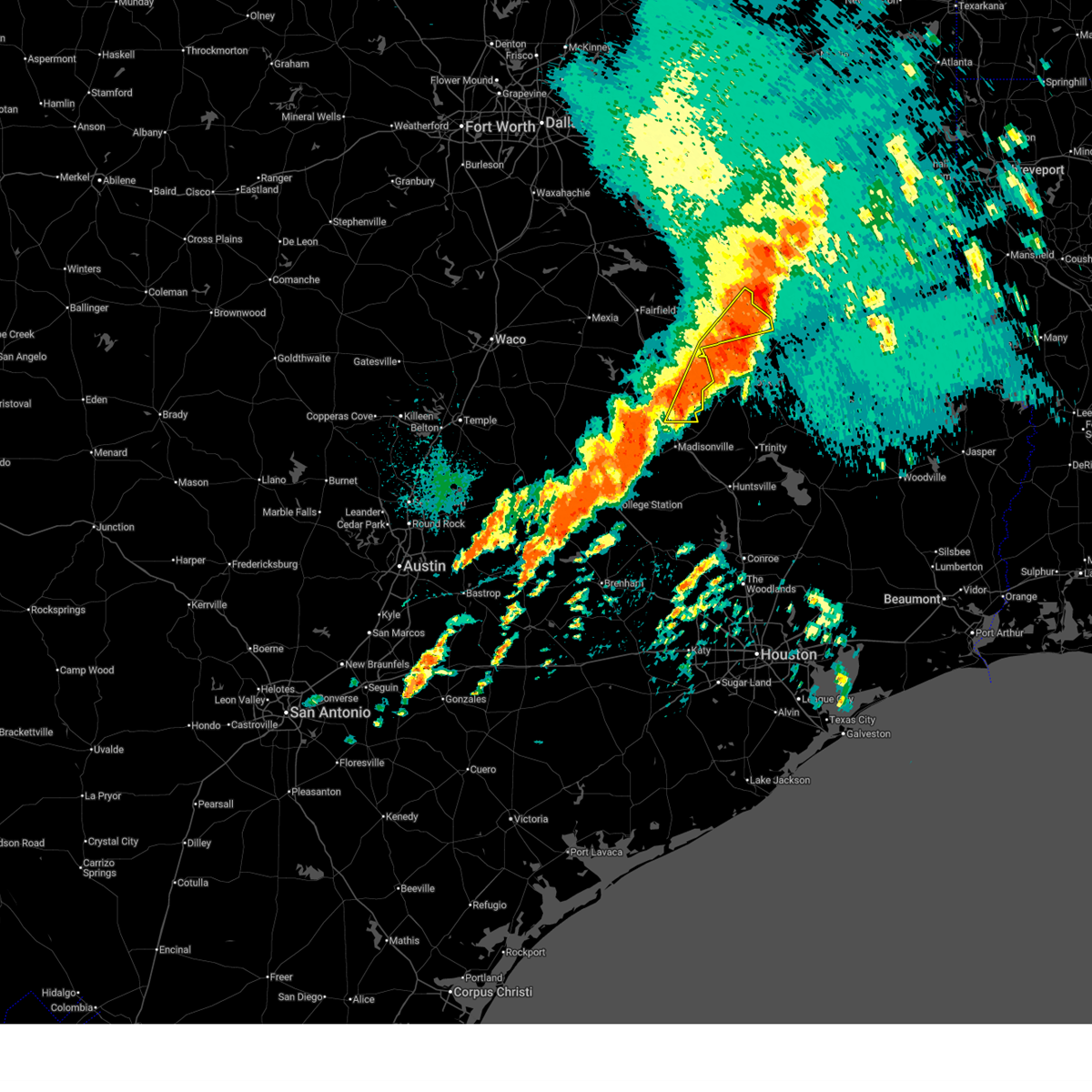 At 532 pm cdt, a severe thunderstorm was located 15 miles east of buffalo, moving east at 35 mph (radar indicated). Hazards include tennis ball size hail and 60 mph wind gusts. People and animals outdoors will be injured. expect hail damage to roofs, siding, windows, and vehicles. expect wind damage to roofs, siding, and trees. baseball size hail was reported in flo, which is 7 miles southeast of buffalo in leon county. this hail core will primarily impact along the trinity river, near and south of the leon/anderson county line. A tornado watch remains in effect until 600 pm cdt for central texas.