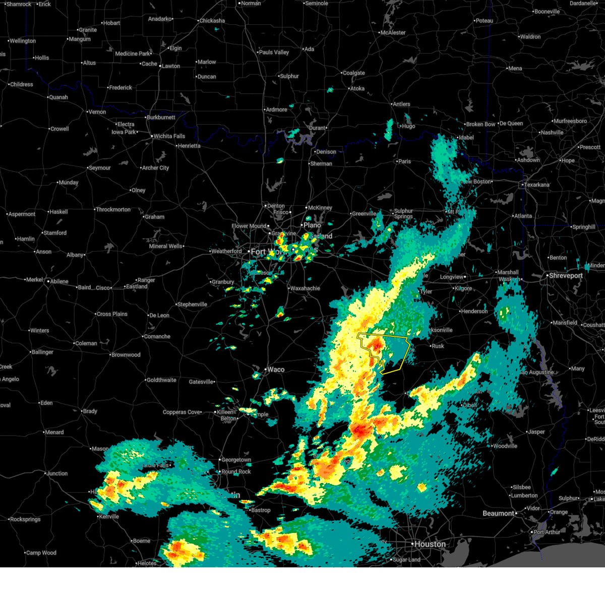 At 1250 pm cdt, a severe thunderstorm capable of producing a tornado was located 12 miles southwest of palestine, moving northeast at 45 mph (radar indicated rotation). Hazards include tornado and quarter size hail. Flying debris will be dangerous to those caught without shelter. mobile homes will be damaged or destroyed. damage to roofs, windows, and vehicles will occur. tree damage is likely. Locations impacted include, palestine, elkhart and oakwood.