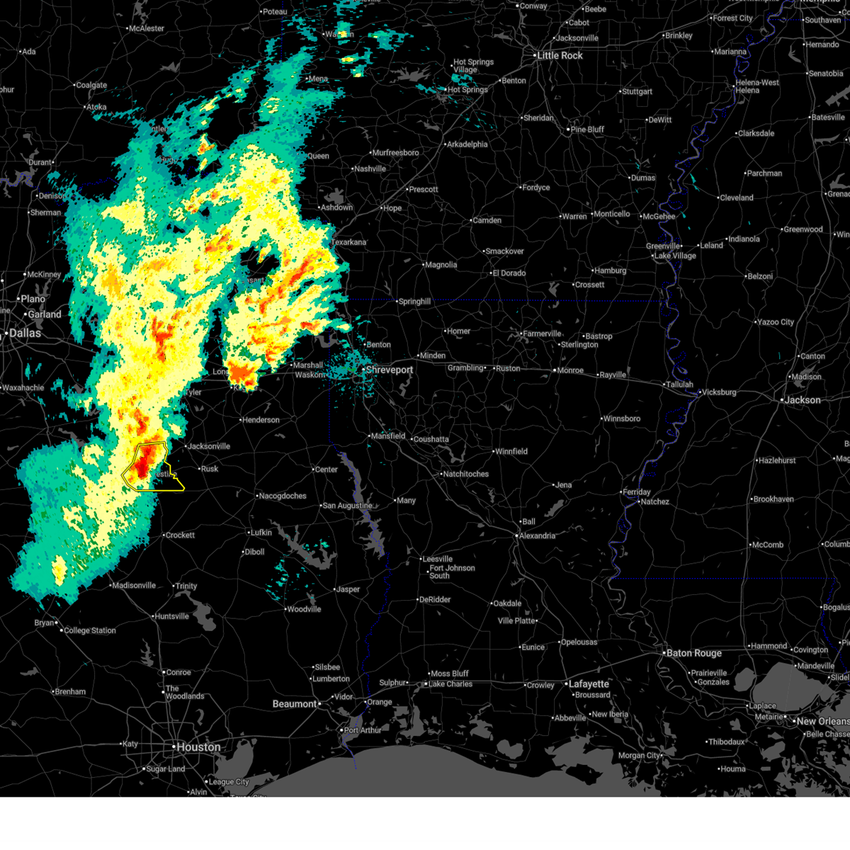 At 1227 am cdt, a severe thunderstorm capable of producing a tornado was located 7 miles northeast of elkhart, or 9 miles southeast of palestine, moving northeast at 40 mph (radar indicated rotation). Hazards include tornado and half dollar size hail. Flying debris will be dangerous to those caught without shelter. mobile homes will be damaged or destroyed. damage to roofs, windows and vehicles will occur. tree damage is likely. locations impacted include, elkhart. Radar indicated.