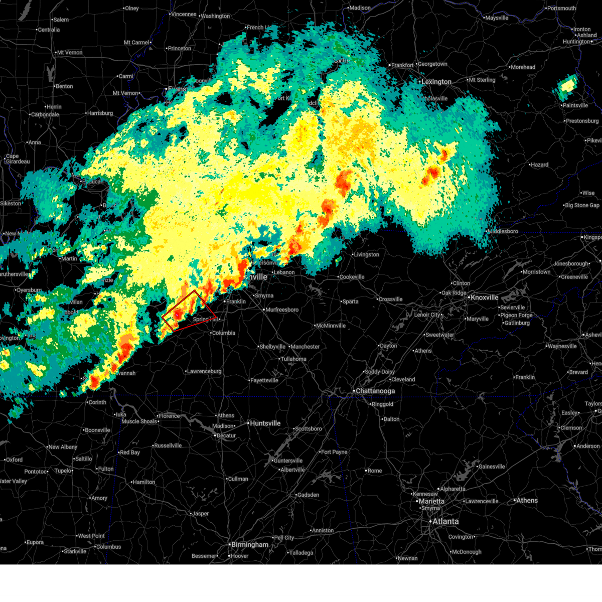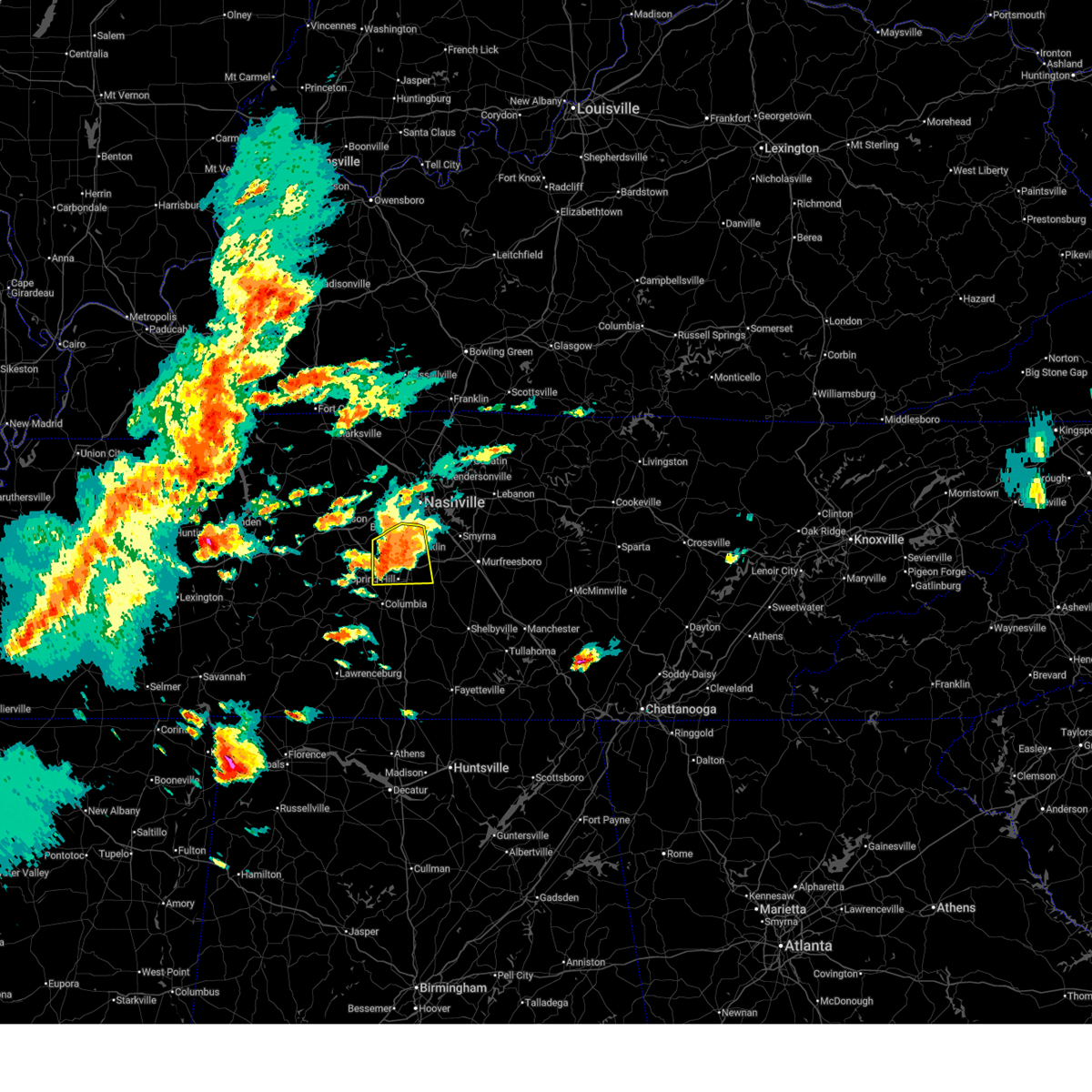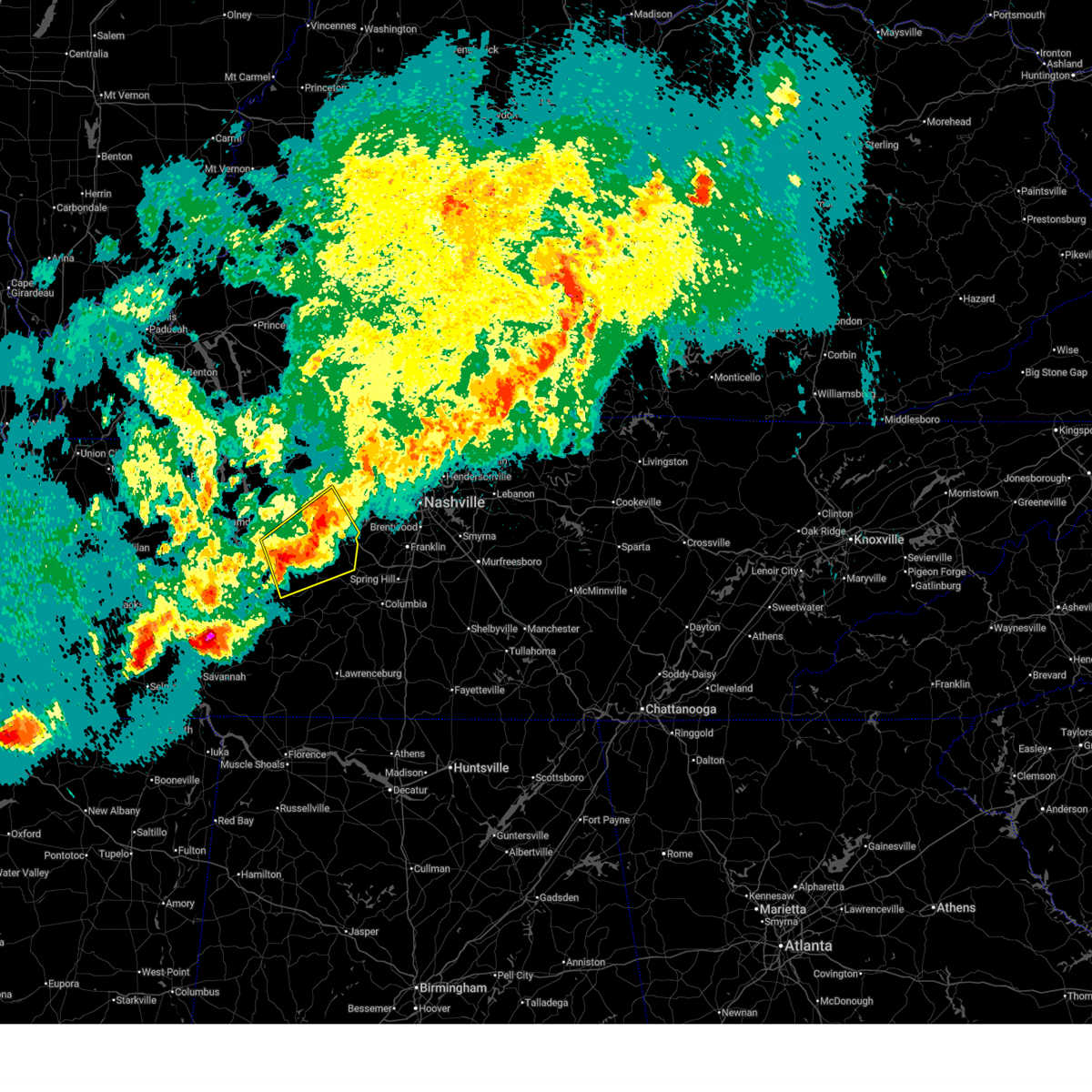 At 404 pm cdt, a severe thunderstorm was located near centerville, moving east at 35 mph (radar indicated). Hazards include tennis ball size hail and 70 mph wind gusts. People and animals outdoors will be injured. expect hail damage to roofs, siding, windows, and vehicles. expect considerable tree damage. wind damage is also likely to mobile homes, roofs, and outbuildings. Locations impacted include, franklin, forest hills, bon aqua, spring hill, thompson's station, brentwood, primm springs, lyles, bellevue, natchez trace at highway 96, santa fe, fairview, leipers fork, oak hill, belle meade, and centerville.