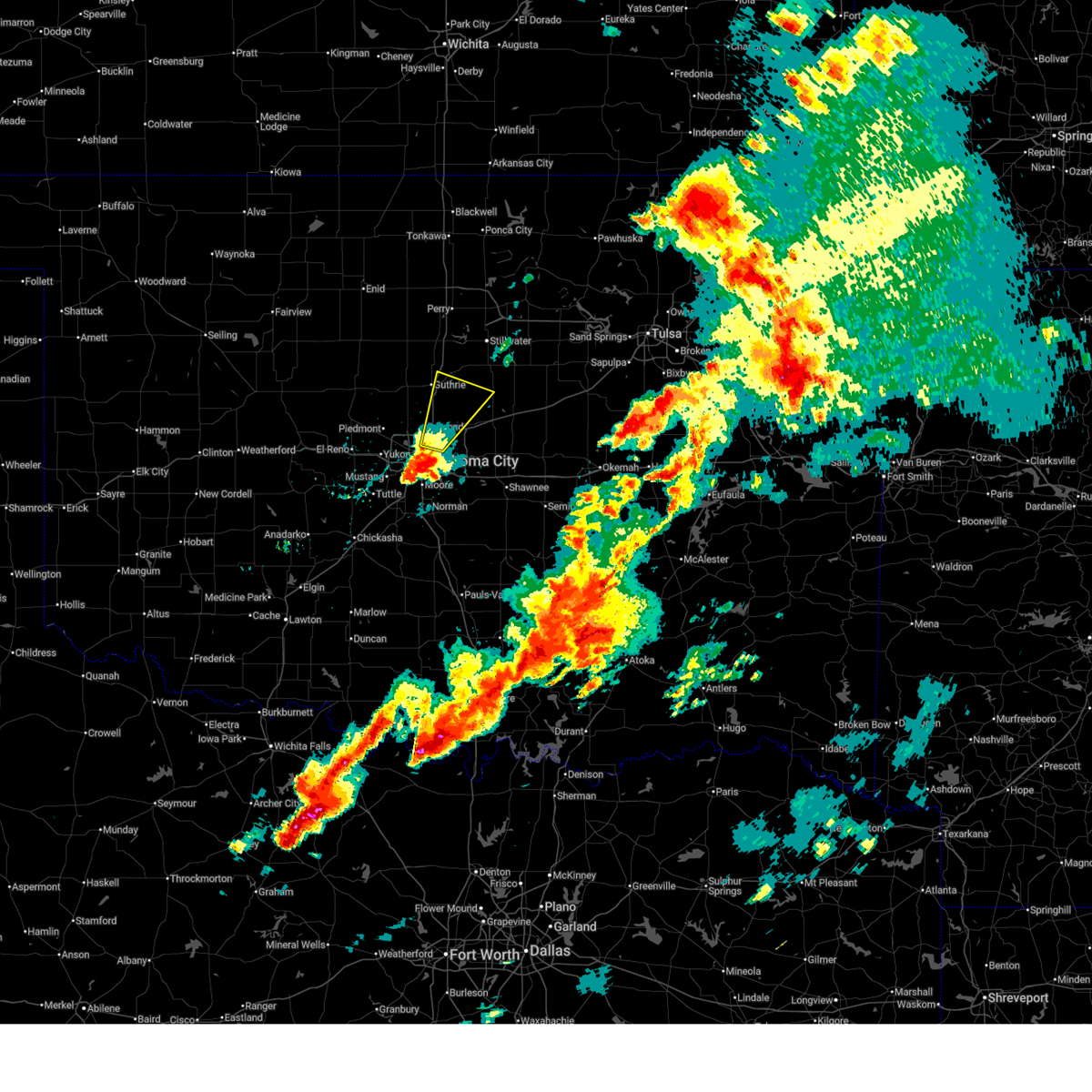At 1107 pm cdt, severe thunderstorms were located along a line extending from near morrison to 4 miles southwest of perkins to near spencer, moving east at 55 mph (radar indicated). Hazards include 70 mph wind gusts and quarter size hail. Hail damage to vehicles is expected. expect considerable tree damage. wind damage is also likely to mobile homes, roofs, and outbuildings. Locations impacted include, oklahoma city, edmond, midwest city, stillwater, shawnee, del city, guthrie, cushing, perry, chandler, yukon, bethany, choctaw, warr acres, the village, harrah, mcloud, spencer, nichols hills, and perkins.