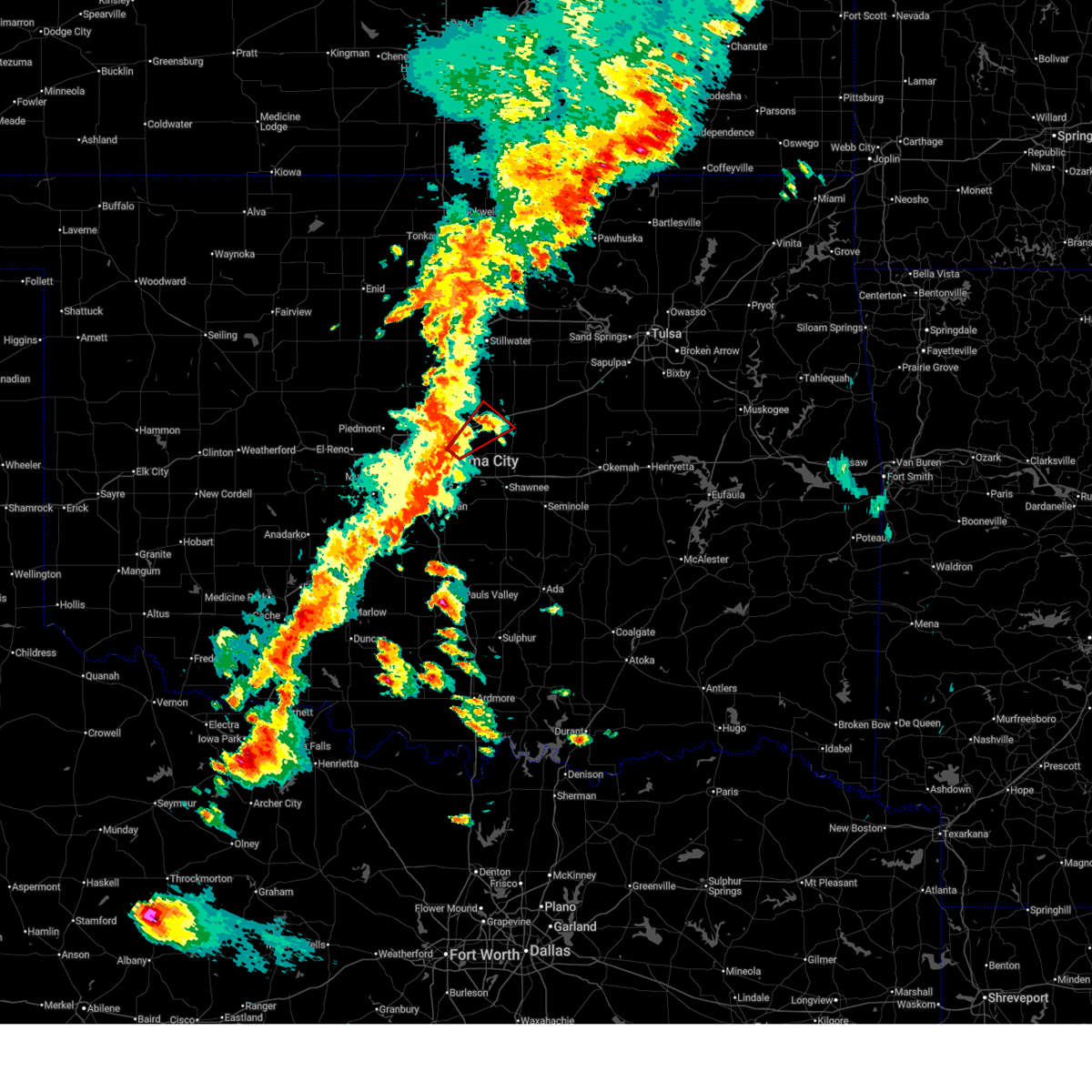 At 1128 pm cdt, severe thunderstorms were located along a line extending from near maramec to near avery to 3 miles east of mcloud, moving east at 55 mph (radar indicated). Hazards include 70 mph wind gusts and quarter size hail. Hail damage to vehicles is expected. expect considerable tree damage. wind damage is also likely to mobile homes, roofs, and outbuildings. Locations impacted include, oklahoma city, edmond, midwest city, stillwater, shawnee, del city, cushing, chandler, choctaw, the village, harrah, mcloud, spencer, nichols hills, perkins, jones, stroud, nicoma park, prague, and langston.