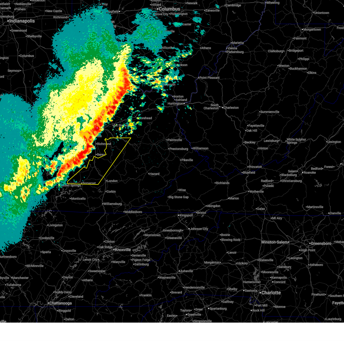 Svrjkl the national weather service in jackson ky has issued a * severe thunderstorm warning for, northern wayne county in south central kentucky, laurel county in south central kentucky, northwestern knox county in southeastern kentucky, pulaski county in south central kentucky, south central jackson county in southeastern kentucky, central mccreary county in south central kentucky, southern rockcastle county in south central kentucky, northwestern whitley county in south central kentucky, west central clay county in southeastern kentucky, * until 130 am edt. * at 1253 am edt, severe thunderstorms were located along a line extending from robinet to billows to frazer, moving east at 75 mph (radar indicated). Hazards include 60 mph wind gusts and penny size hail. Expect damage to roofs, siding, and trees. severe thunderstorms will be near, hazel patch around 100 am edt. hightop around 105 am edt. fall rock around 110 am edt. Other locations in the path of these severe thunderstorms include marydell and lynn camp.